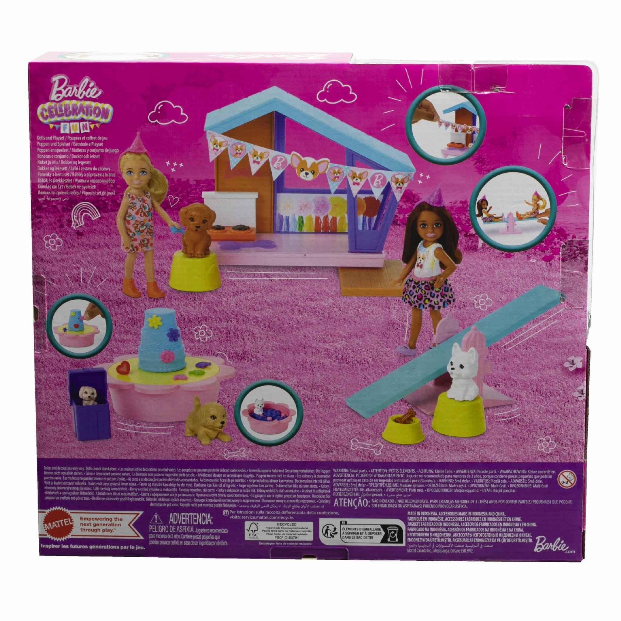 Z dwiema małymi lalkami, czterema szczeniakami, budką dla psa i ponad 15 akcesoriami, aby wyobrazić sobie historie, zestaw Chelsea z serii Celebration Fun Barbie jest gotowy na świętowanie!