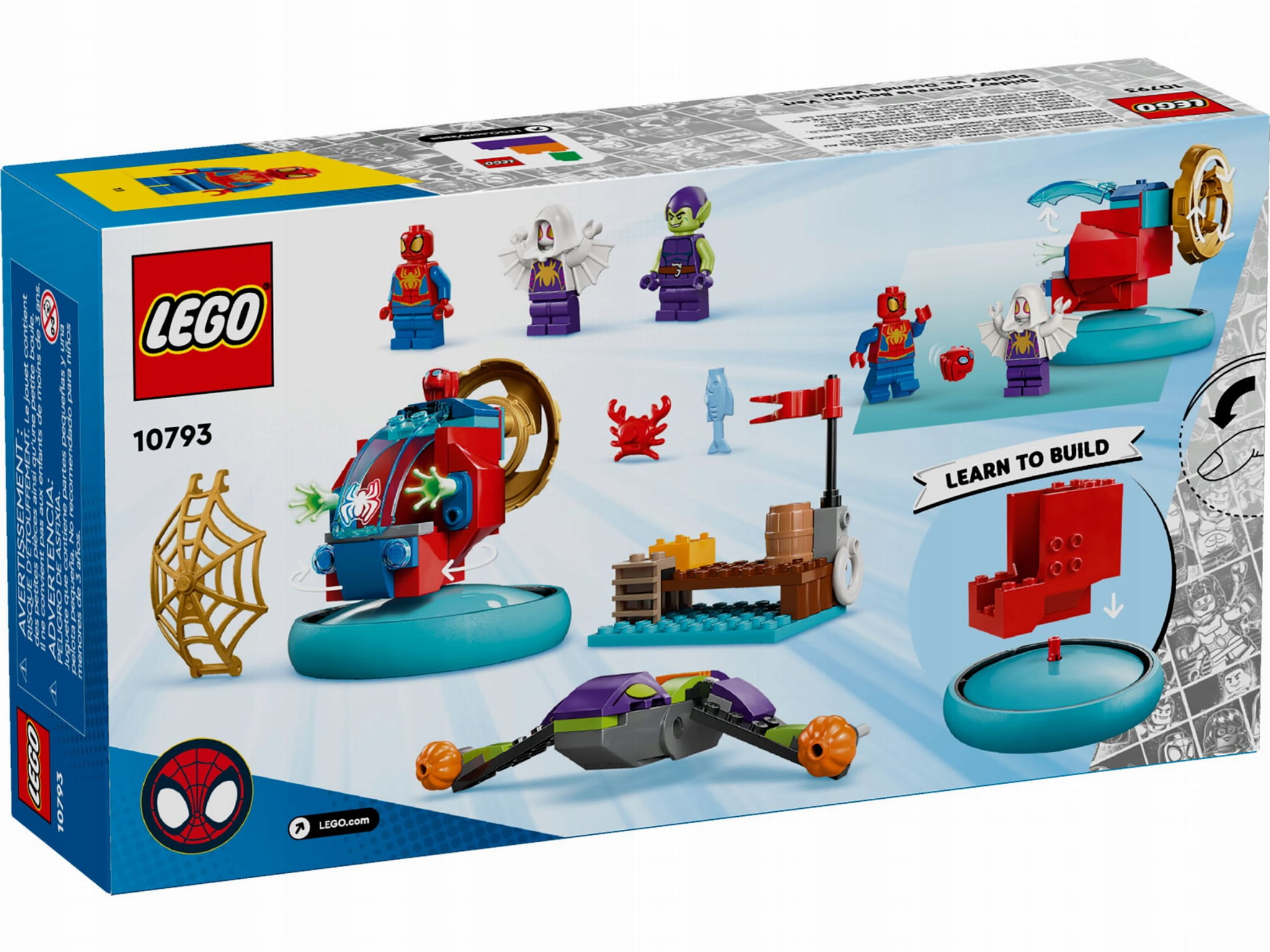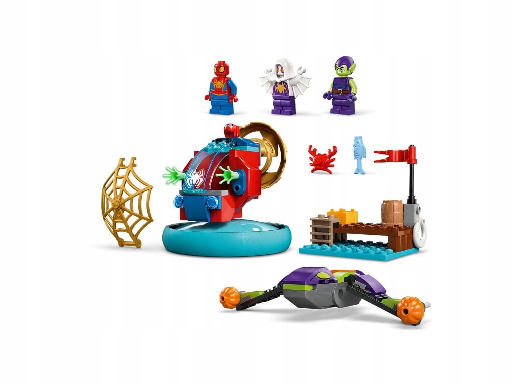 Ten zestaw z serialu Disney+ Spidey i super-kumple zawiera: minifigurkę Spider-Mana i jego latający spinner z obrotowym śmigłem i podnoszonym kokpitem, minifigurkę Zielonego Goblina i jego szybowiec z dyniowymi pociskami oraz minifigurkę Ghost-Spider z dużą złotą siecią. Jest tu także przyjaciel Spider-Mana, robot Trace-E, morskie akcesoria i uroczy krab.