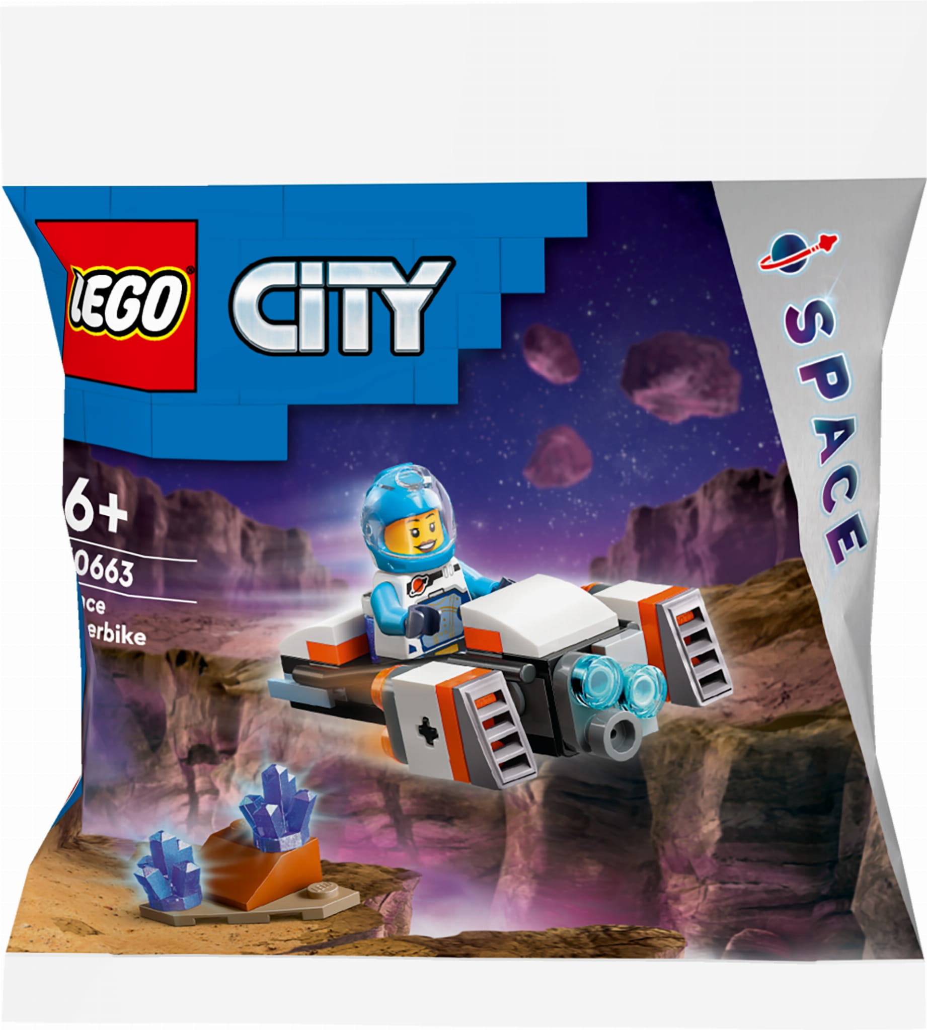 - Zestaw LEGO 30663 City Kosmiczny latający motocykl jest odpowiedni dla dzieci w wieku 6+. To świetny prezent dla każdego, kto uwielbia LEGO City i fantastykę kosmiczną.