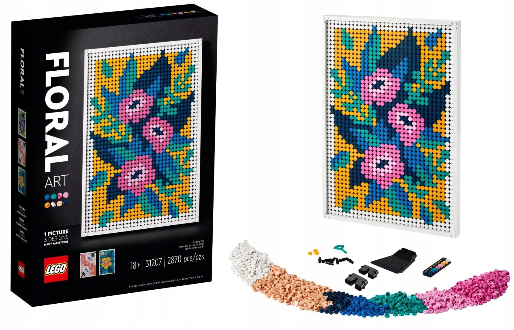 Zestaw LEGO® Art Sztuka kwiatowa (31207) z obrazem do powieszenia na ścianie stanowi źródło swobodnej, kreatywnej zabawy.