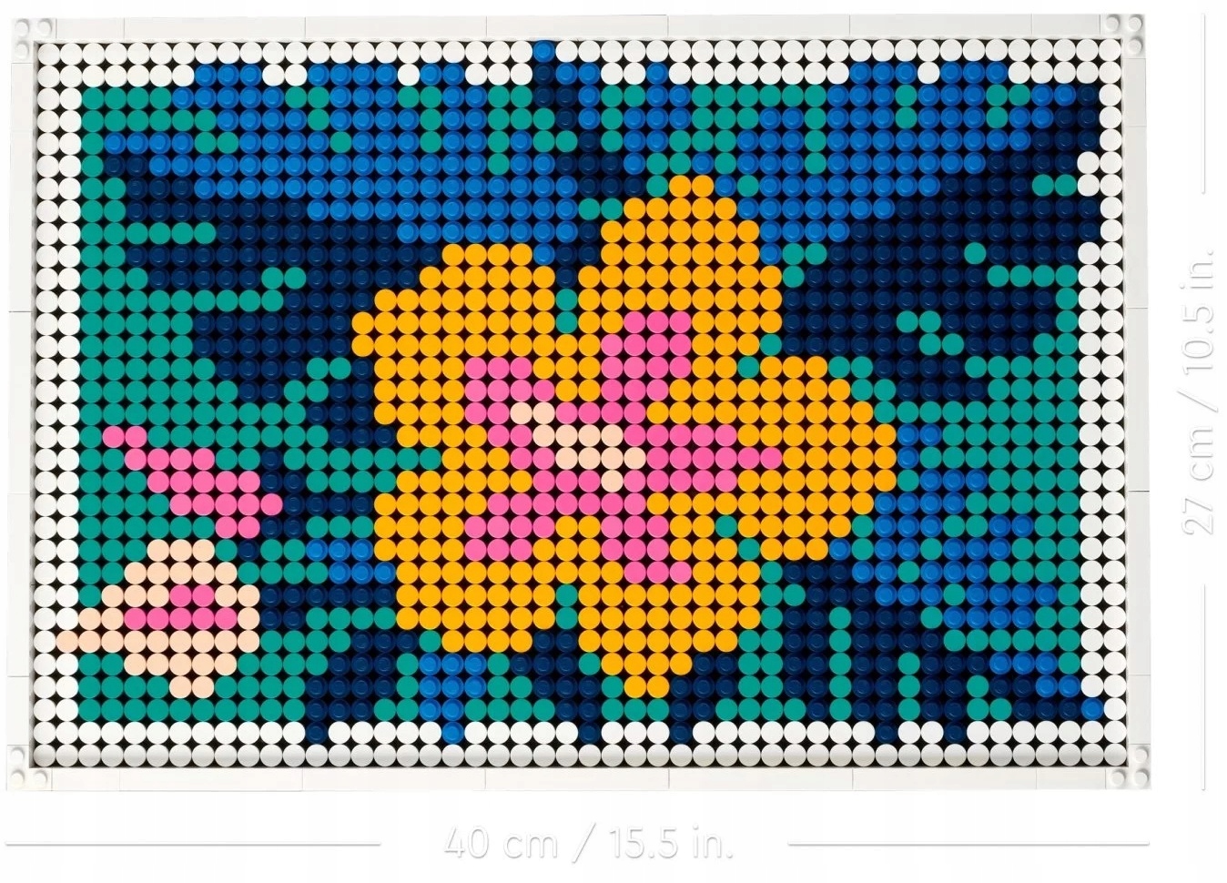- Doskonały prezent — ten zestaw LEGO® Art ma ok. 40 cm wysokości i 27 cm szerokości. Sprawdzi się też jako prezent dla wszystkich fanów kwiatów, kolorów i kreatywnych projektów — takich jak Ty