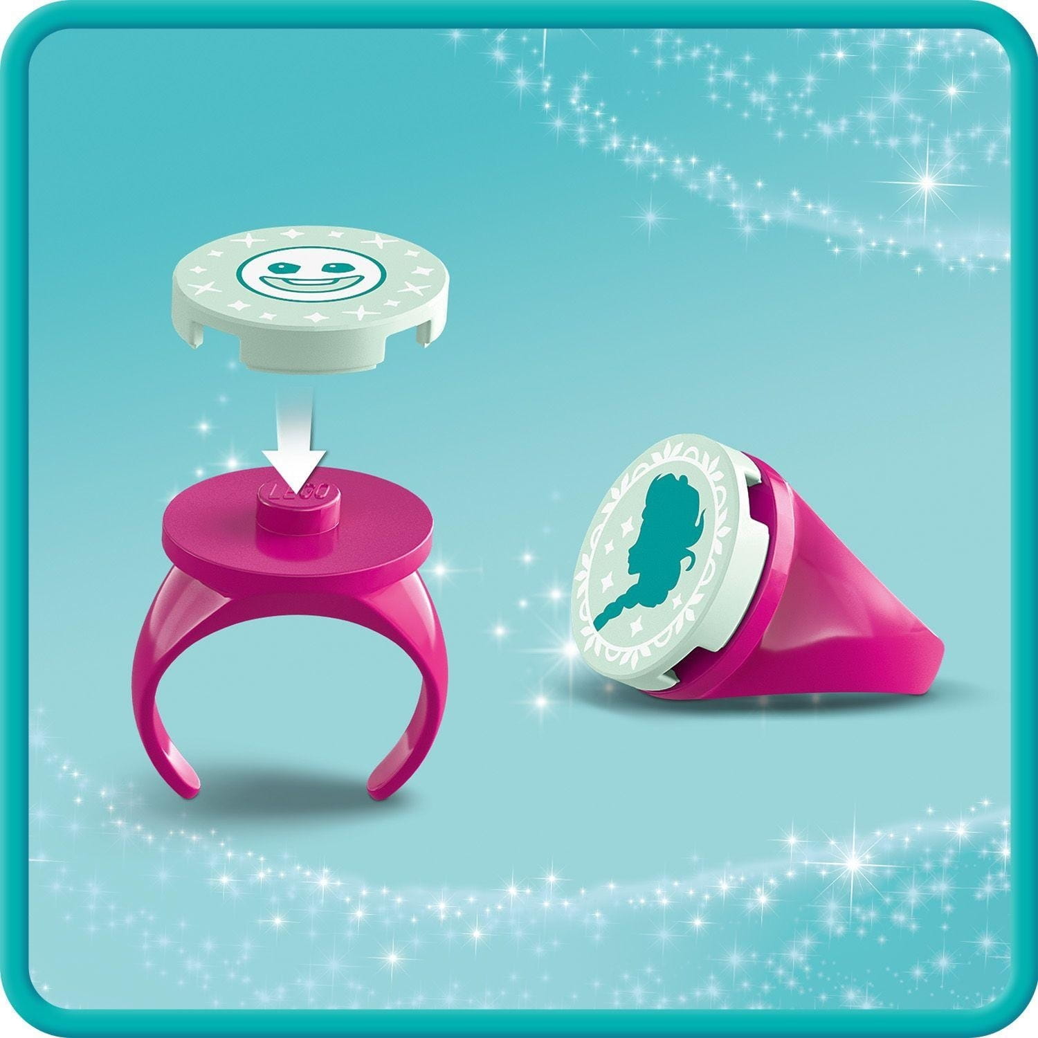 W zestawie jest też minilaleczka Elzy LEGO Disney i figurka bałwanka LEGO Disney, które ułatwiają zabawę w odgrywanie ról, a także dwa kolekcjonerskie pierścionki z wymiennymi dekoracjami.