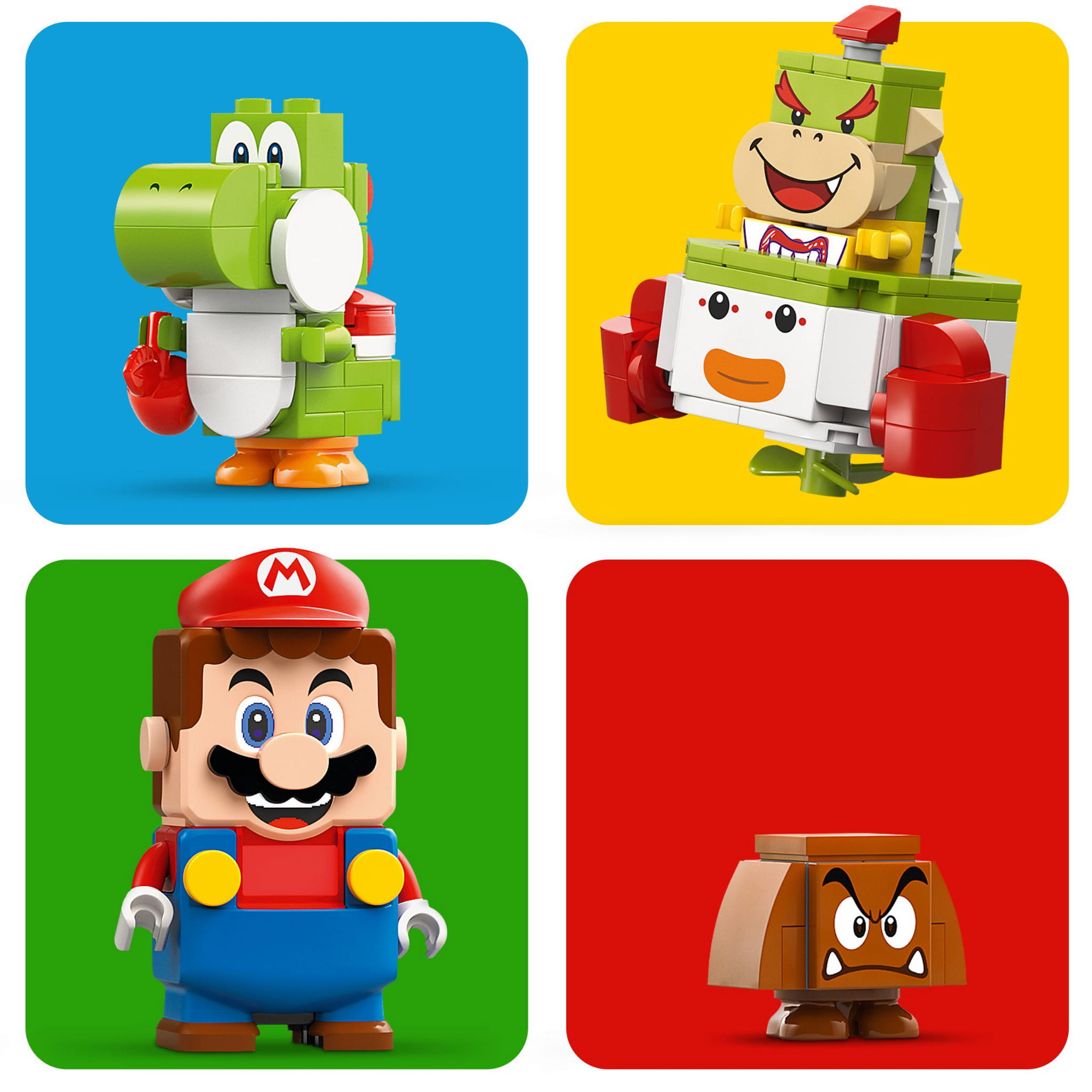 - Cztery figurki LEGO® Super Mario™ — interaktywna figurka LEGO® Mario™ oraz Bowser Jr., Yoshi i Goomba