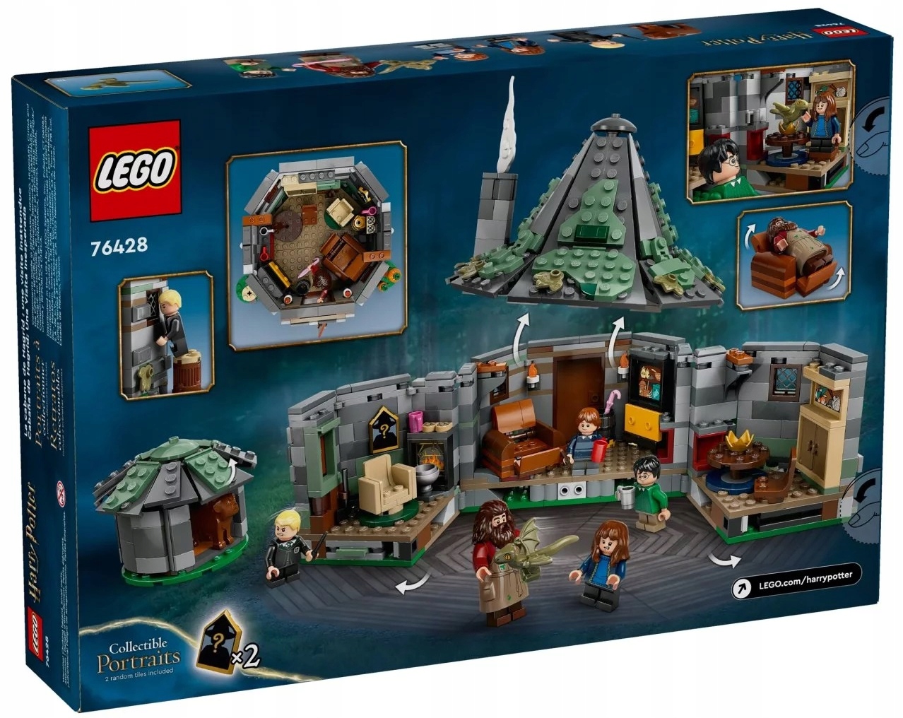 Zawiera on model chatki Hagrida do zbudowania, który ma zdejmowany dach i otwieraną konstrukcję, aby uzyskać łatwy dostęp do szczegółowego wnętrza — tam znajdziesz rozkładany fotel, na którym Hagrid™ może usiąść, smocze jajo, dwa z 14 kolekcjonerskich portretów Hogwartu™ oraz inne elementy.