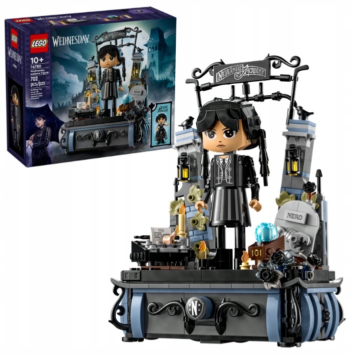 - Akademia Nevermore — fani serialu telewizyjnego w wieku od 10 lat mogą zbudować Wednesday w mundurku lub ubrać ją w sukienkę ze szkolnego balu, a następnie ustawić figurkę na podstawce