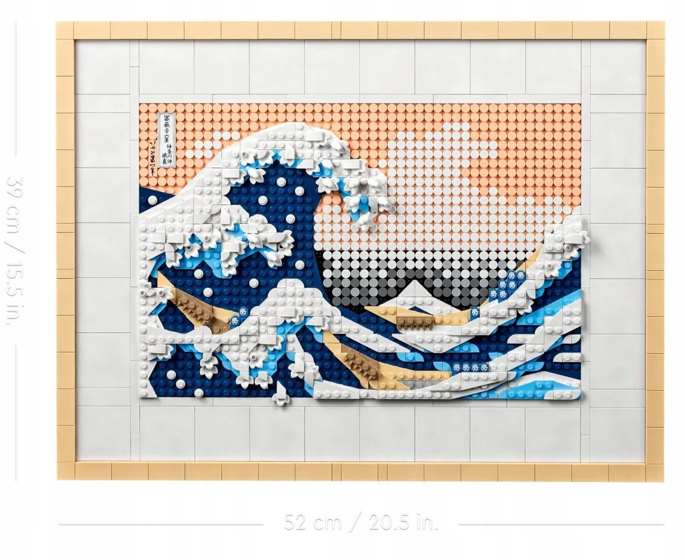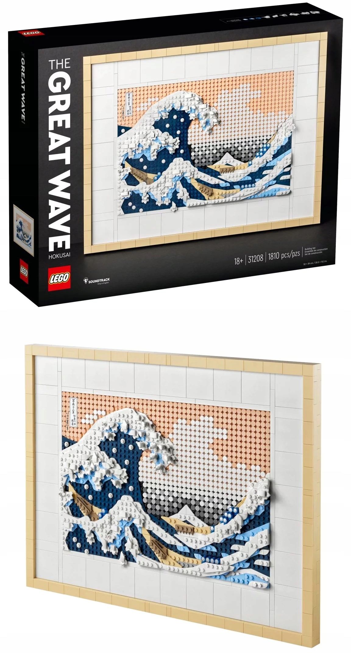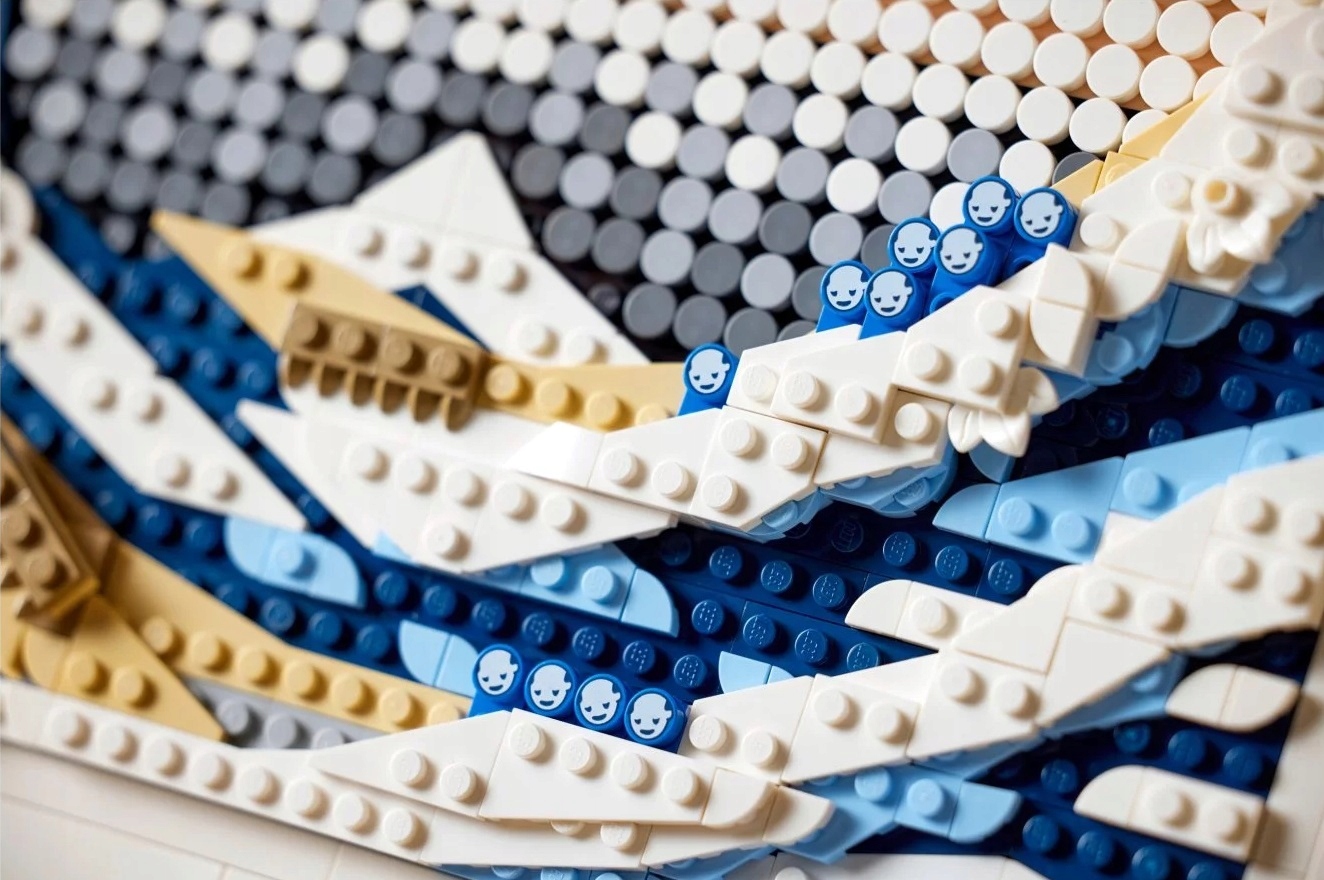 - Wspaniała ozdoba – model LEGO® dla dorosłych zawierający 1810 elementów, w tym sześć płytek w formie płótna, dwa wieszaki, rozdzielacz klocków i dekoracyjną płytkę z podpisem Hokusaia
