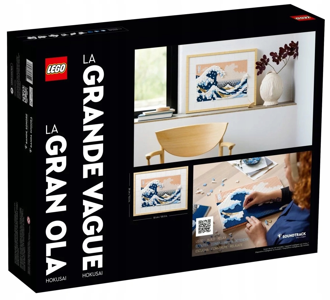 Odtwórz „Wielką falę” Hokusaia z klocków LEGO i stwórz słynne, wielowymiarowe dzieło. Podczas budowania tej luksusowej ozdoby zeskanuj kod QR i posłuchaj ścieżki dźwiękowej dopasowanej do zestawu, która umili doświadczenie budowania.