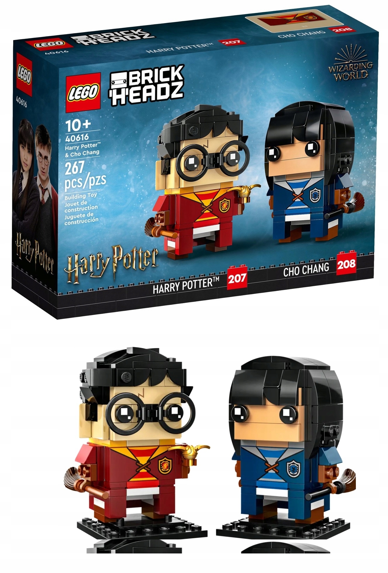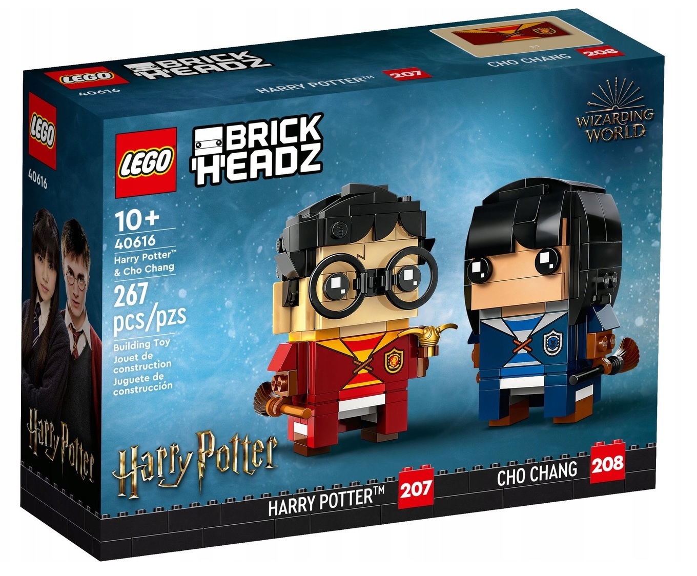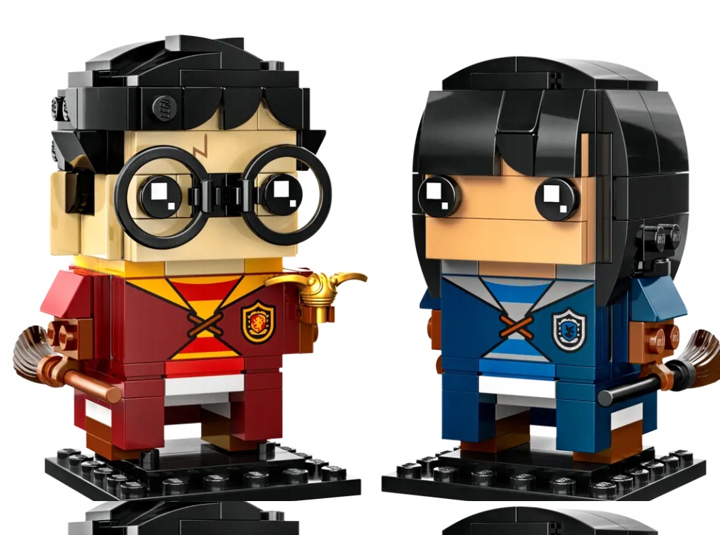 - Harry Potter™ i Cho Chang (40616) w stylu LEGO® BrickHeadz™ — zbuduj dwie postacie w strojach do quidditcha™ ich domów i ustaw je na półce wraz z miotłami i złotym zniczem™