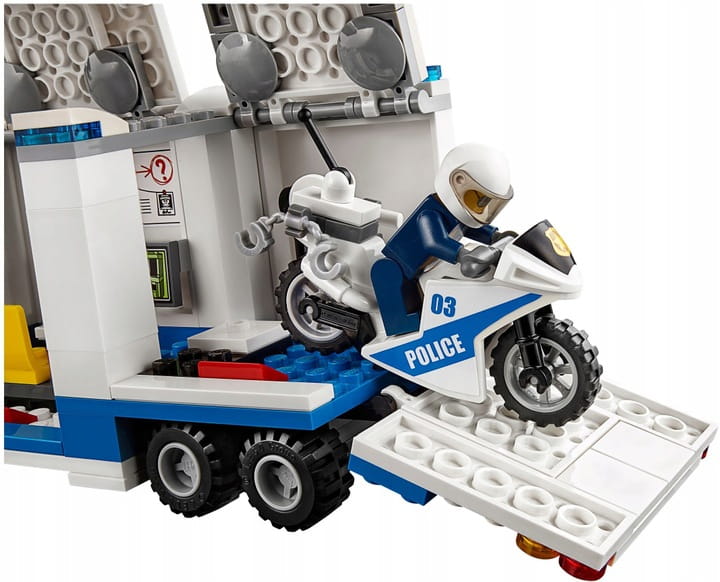 • Mobilne centrum dowodzenia ma odłączaną kabinę, celę z funkcją ucieczki oraz miejsce na dwie minifigurki. Jest tam także centrum monitoringu z ekranami, antena satelitarna na dachu, biurko, miejsce do siedzenia, a także schowek na motocykl i narzędzia z tyłu naczepy.
