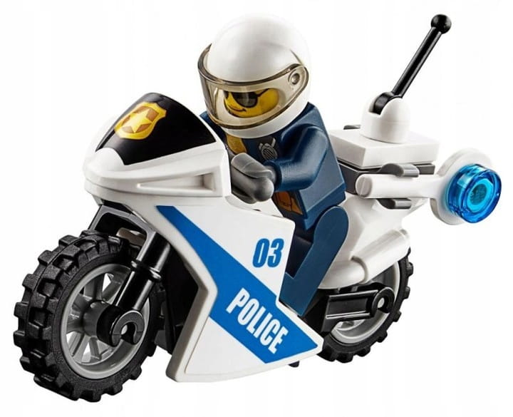 • Zawiera cztery minifigurki: dwóch policjantów i dwóch złodziejaszków, a do tego figurkę policyjnego psa.