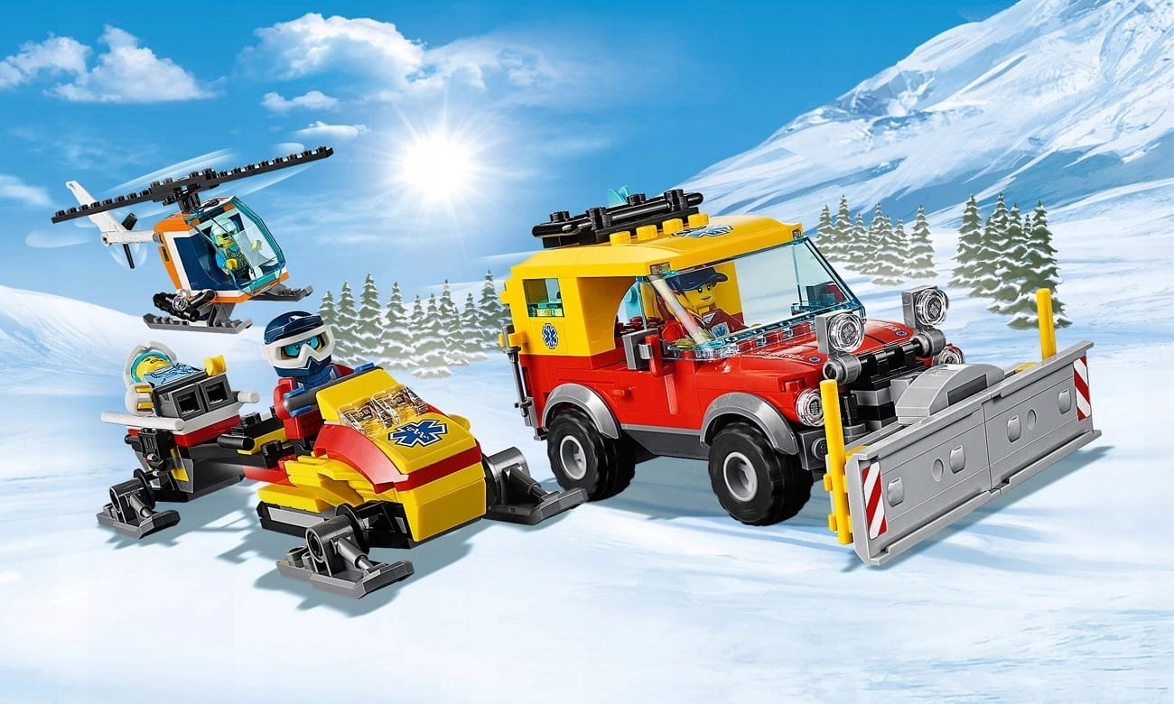 - W komplecie jest również terenówka ratownicza z ruchomym pługiem śnieżnym i bagażnikiem na dachu, skuter śnieżny z przyczepką oraz helikopter z otwieranym kokpitem, obracającymi się wirnikami oraz kamerą.