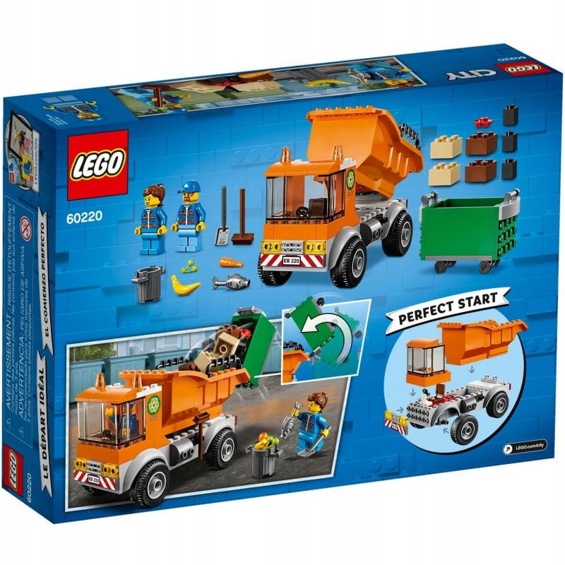 Twojemu dziecku spodoba się sprzątanie miasta LEGO® City w zestawie 60220 Śmieciarka. Ten pracowity zestaw LEGO 4+ został zaprojektowany z myślą o przedszkolakach i małych dzieciach. Wytrzymała śmieciarka z kabiną na dwie minifigurki i przechylanym zbiornikiem zbudowana jest na specjalnej podstawce startowej, która pozwala nawet zupełnym nowicjuszom poczuć dumę z samodzielnego złożenia modelu. Zestaw zawiera proste instrukcje, które pomogą zacząć budowanie i zabawę, a młodym miłośnikom pojazdów wyjaśnią cel poszczególnych kroków budowania. Dzięki temu dzieci rozwijają wyobraźnię i pewność siebie, poznając świat budowania z klocków LEGO w scenerii znanej z serii LEGO City. W tym zabawnym zestawie znajdziesz również kontener na śmieci, elementy przedstawiające odpadki i dwie minifigurki.