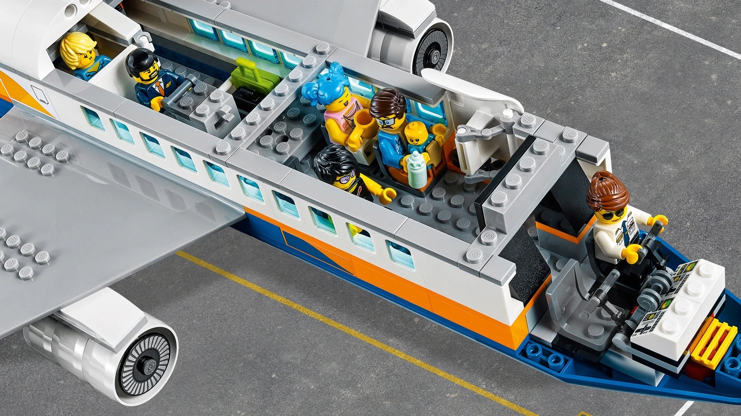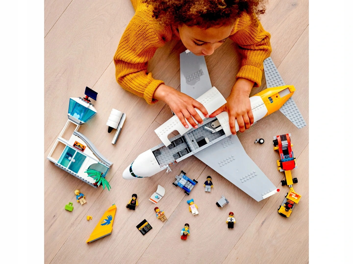 - Zawiera wielki samolot z miejscami dla minifigurek pilota i pasażerów, w tym dla Poppy Starr znanej z serialu telewizyjnego LEGO City Adventures. Do tego w pudełku jest budynek terminalu z przenośnikiem bagażowym i wieżą kontroli lotów.