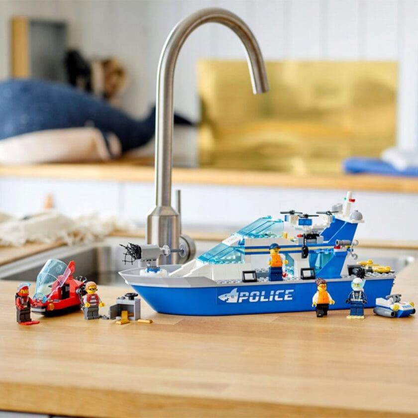 - W tym zestawie dzieci znajdą minifigurki postaci z serialu telewizyjnego LEGO® City Adventures oraz policyjną łódź patrolową, która pływa, ma mnóstwo niezwykłych detali i pozwala odtwarzać najfajniejsze sceny.