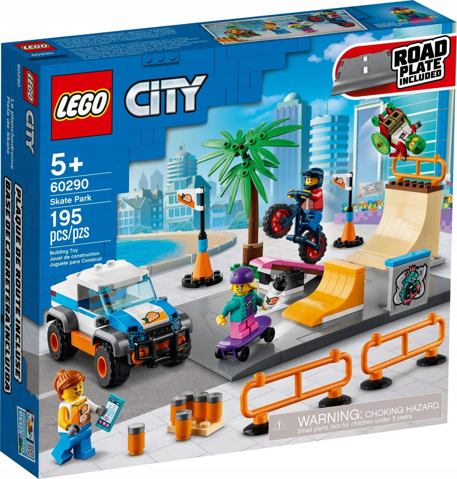 Skatepark składa się z quarter pipe, rampa, huśtawka i poręcz. To nie koniec, bo w pudełku jest też płyta drogowa, więc dzieci mogą rozbudować zestaw i stworzyć własne miasto. Dodajmy do tego minifigurki kierowcy BMX-a, sportowca na wózku i skatera, a przepis na wiele godzin emocjonującej zabawy będzie gotowy!Dla chłopców i dziewczynek od piątego roku życia W komplecie z klockami dzieci znajdą łatwe drukowane instrukcje, ale mogą też skorzystać z interaktywnego przewodnika Instructions PLUS w aplikacji LEGO Building Instructions — zawiera on narzędzia do przybliżania i obracania widoku, które każdego małego budowniczego LEGO zmienią w mistrza konstrukcji. Kreatywny świat LEGO City. LEGO City to gwarancja ekscytującej zabawy w budowanie. Realistyczne pojazdy, szczegółowe budynki i ciekawe postacie pozwalają wymyślać historyjki, które w pomysłowy sposób odzwierciedlają prawdziwe życie.
