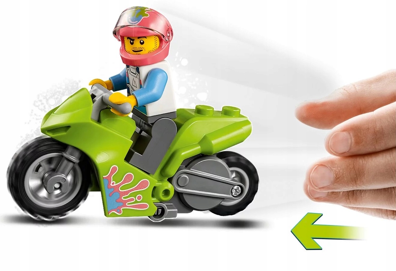- Motocykl kaskaderski napędzany kołem zamachowym i dwa monster trucki do miażdżenia aut pozwolą urządzić niezapomniany pokaz kaskaderski. Model można też połączyć z innymi zestawami LEGO® City Stuntz, by zabawa była jeszcze lepsza!