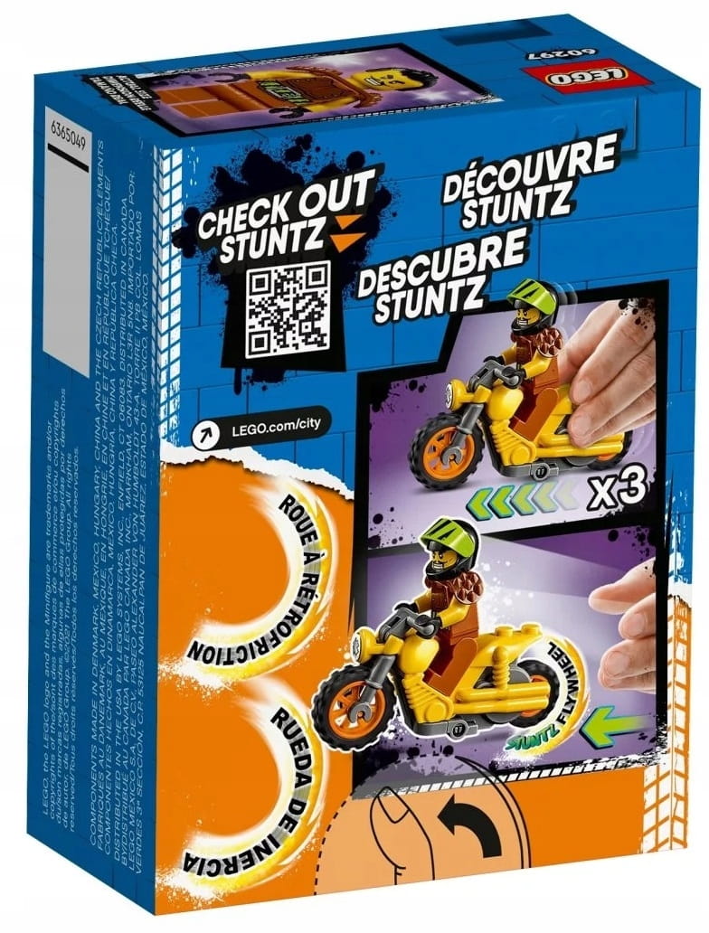 - Zestaw LEGO® City Demolka na motocyklu kaskaderskim (60297) z motocyklem napędzanym kołem zamachowym oraz brawurowym Wallopem z serialu telewizyjnego LEGO City.