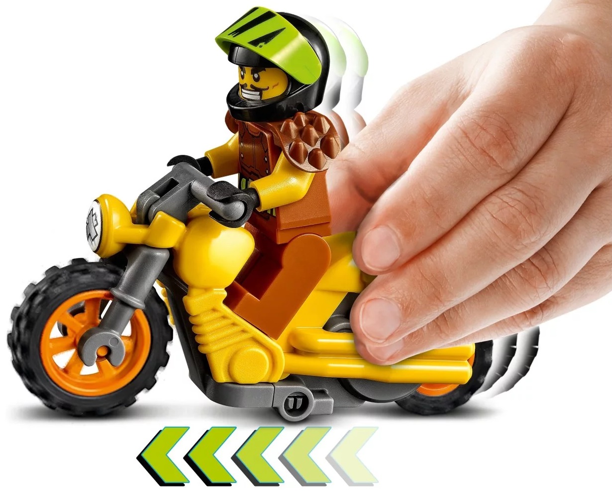 - Zestaw LEGO® City Demolka na motocyklu kaskaderskim jest doskonałym prezentem na Gwiazdkę, urodziny lub z innej okazji dla miłośników pokazów kaskaderskich w wieku od 5 lat.