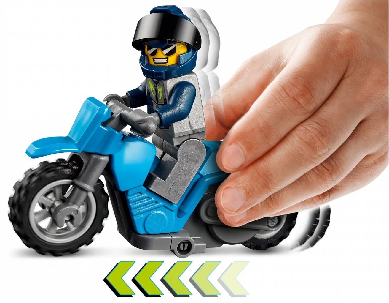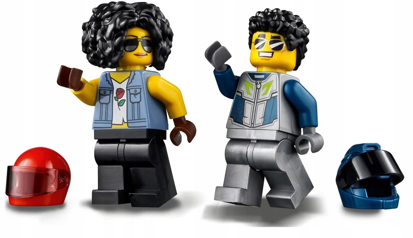 - Pełen akcji zestaw LEGO® City Konkurs kaskaderski (60299) z dwoma motocyklami napędzanymi kołem zamachowym, torem kaskaderskim oraz dwoma motocyklistami, w tym bohaterem serialu telewizyjnego LEGO City.