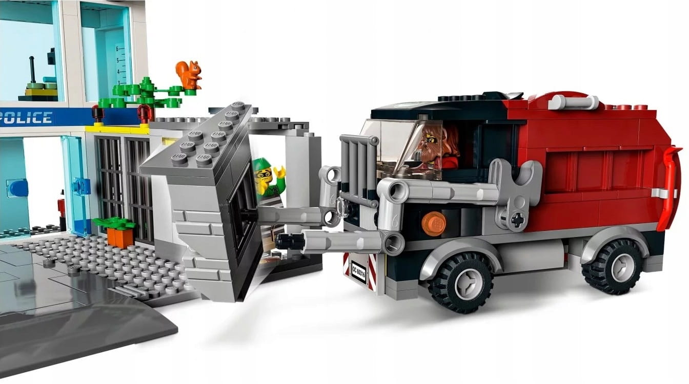 - Cechy i funkcje — śmieciarka ma podnoszony kontener i dwa tarany do zburzenia „ucieczkowej” ściany aresztu. W komplecie jest też płytka drogowa, którą można połączyć z innymi zestawami LEGO® City