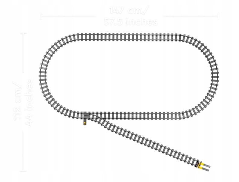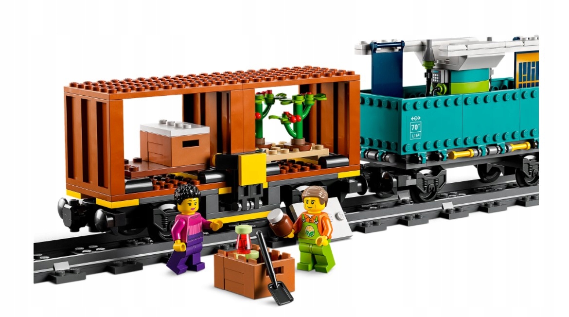 - 33 elementy torów kolejowych — w zestawie LEGO® City Pociąg towarowy znajduje się 16 torów łukowatych, 16 torów prostych oraz zwrotnica