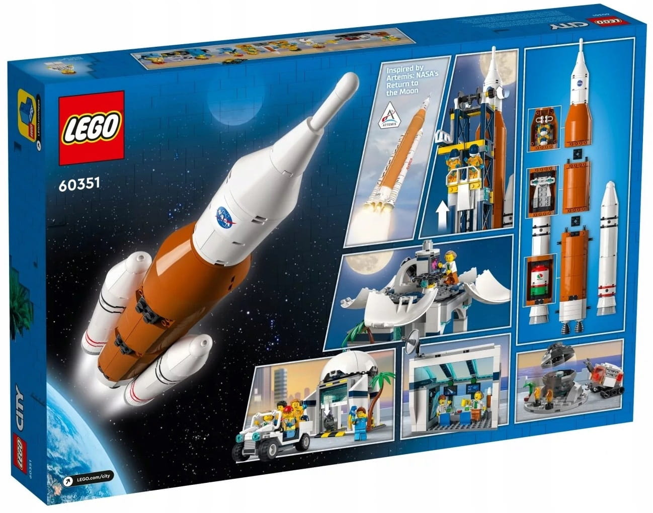 - Kosmiczny zestaw LEGO® City — model LEGO City Start rakiety z kosmodromu (60351) zawiera szereg inspirowanych pracą NASA zabawek, które zachęcają do pomysłowej zabawy w kosmicznym stylu