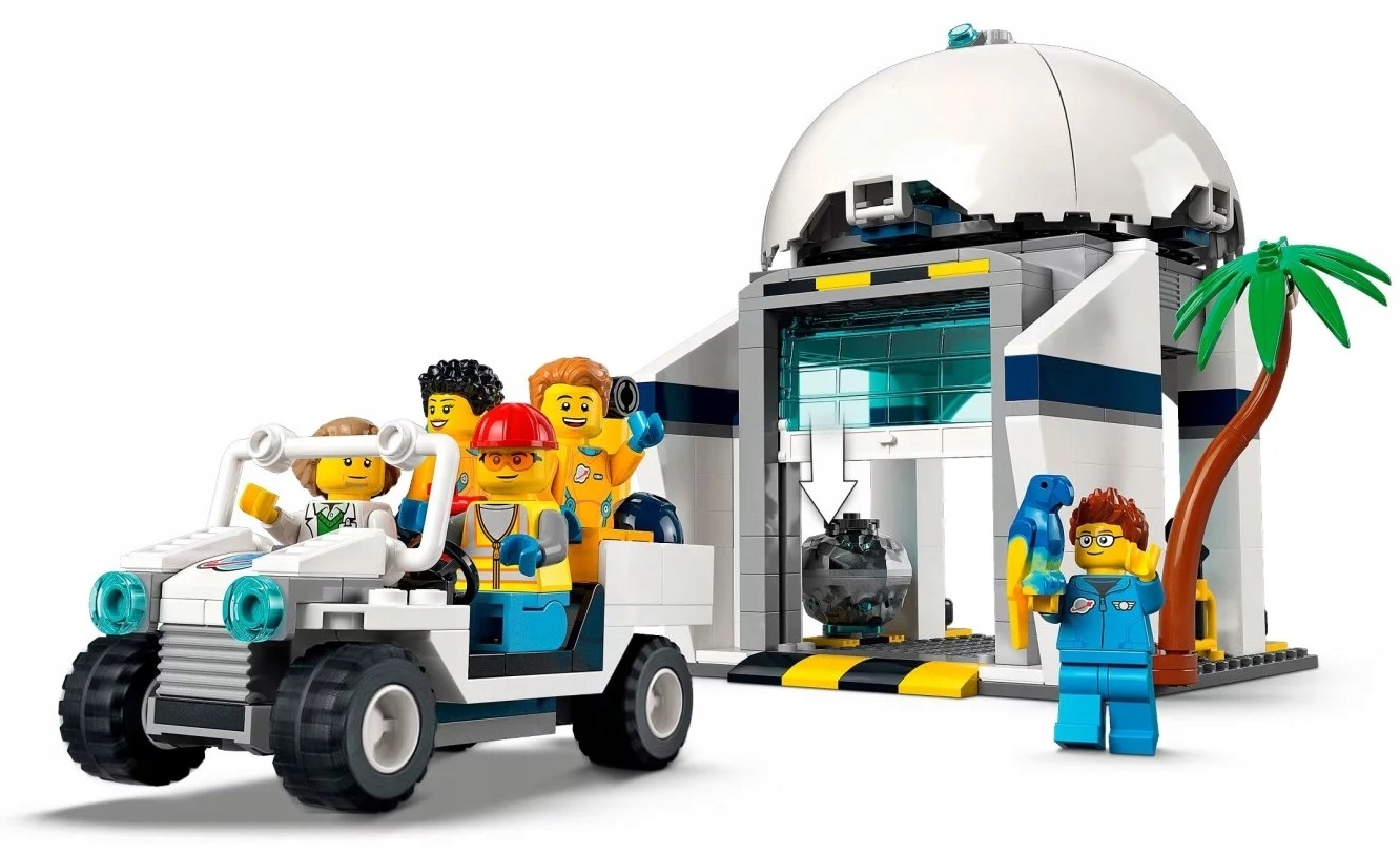 Jest tu też szczegółowe obserwatorium z kopułą, centrum lotów kosmicznych, pojazd serwisowy, dron i sześć minifigurek do odgrywania ról.