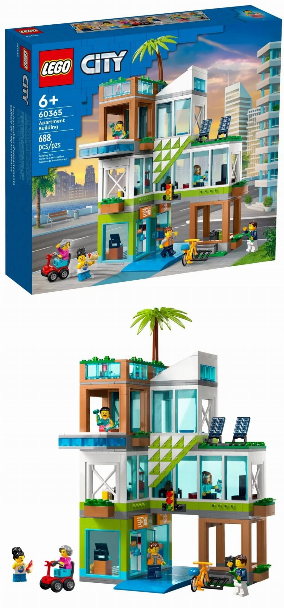 - Apartamentowiec, który można przebudować — Apartamentowiec LEGO® City (60365) zawiera modułowe pomieszczenia, które można łączyć, a także zabawne postacie. To zestaw dla dzieci, które uwielbiają realistyczną zabawę
