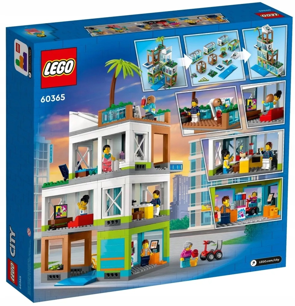 Ten wysokiej jakości zestaw LEGO® City Apartamentowiec (60365) dla sześciolatków i starszych dzieci obejmuje modułowe pomieszczenia, które można łączyć.