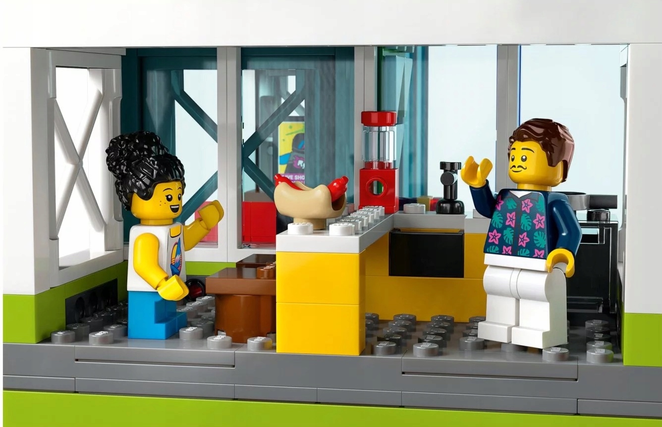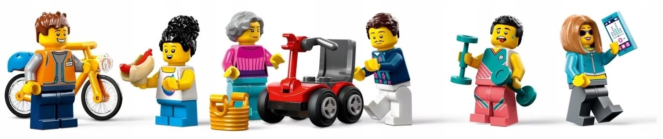 Zestaw zawiera również zabawkowy skuter inwalidzki, rower, sześć minifigurek i płytę drogową LEGO, którą można połączyć z innymi zestawami z serii LEGO City.