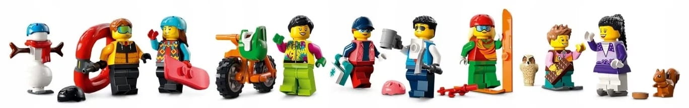 - Akcesoria dla minifigurek LEGO® — akcesoria obejmują rower, apteczkę, dwa plecaki, aparat fotograficzny, cztery narty, dwie deski snowboardowe, cztery kijki narciarskie, dwa kije hokejowe, cztery łyżwy, cztery rakiety śnieżne i dwa czekany