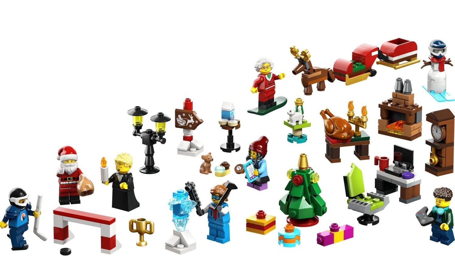 - Fajne postacie — wśród niespodzianek znajdują się minifigurki Mikołaja i pani Mikołajowej, kolędnika, hokeisty, rzeźbiarza w lodzie i fanów TikToka, a także figurki bałwana, renifera, szczeniaczka i kotka