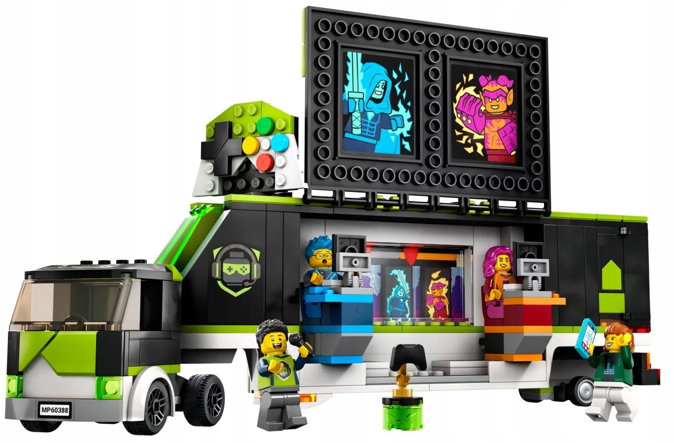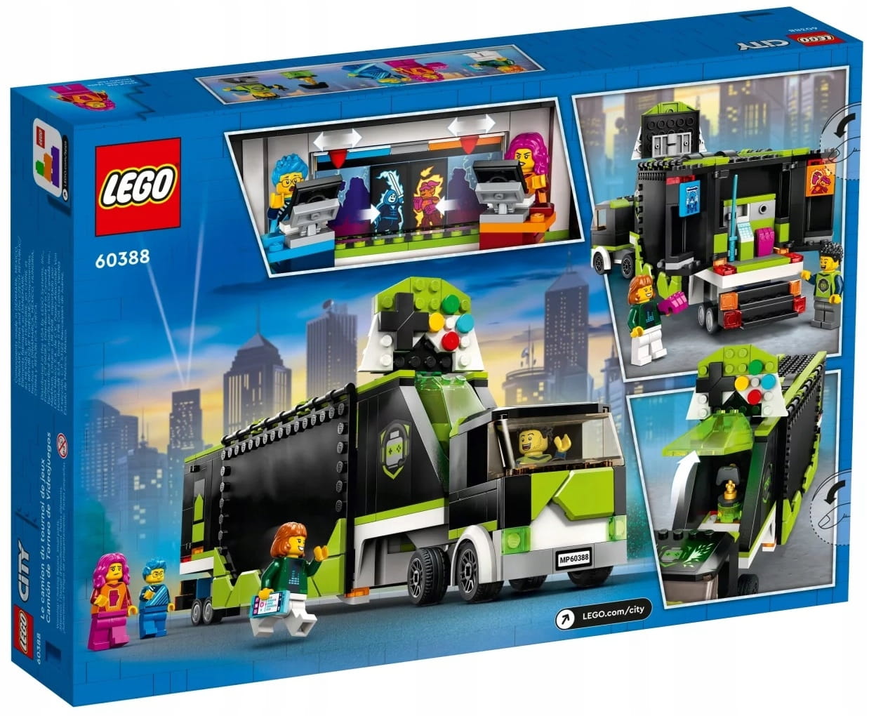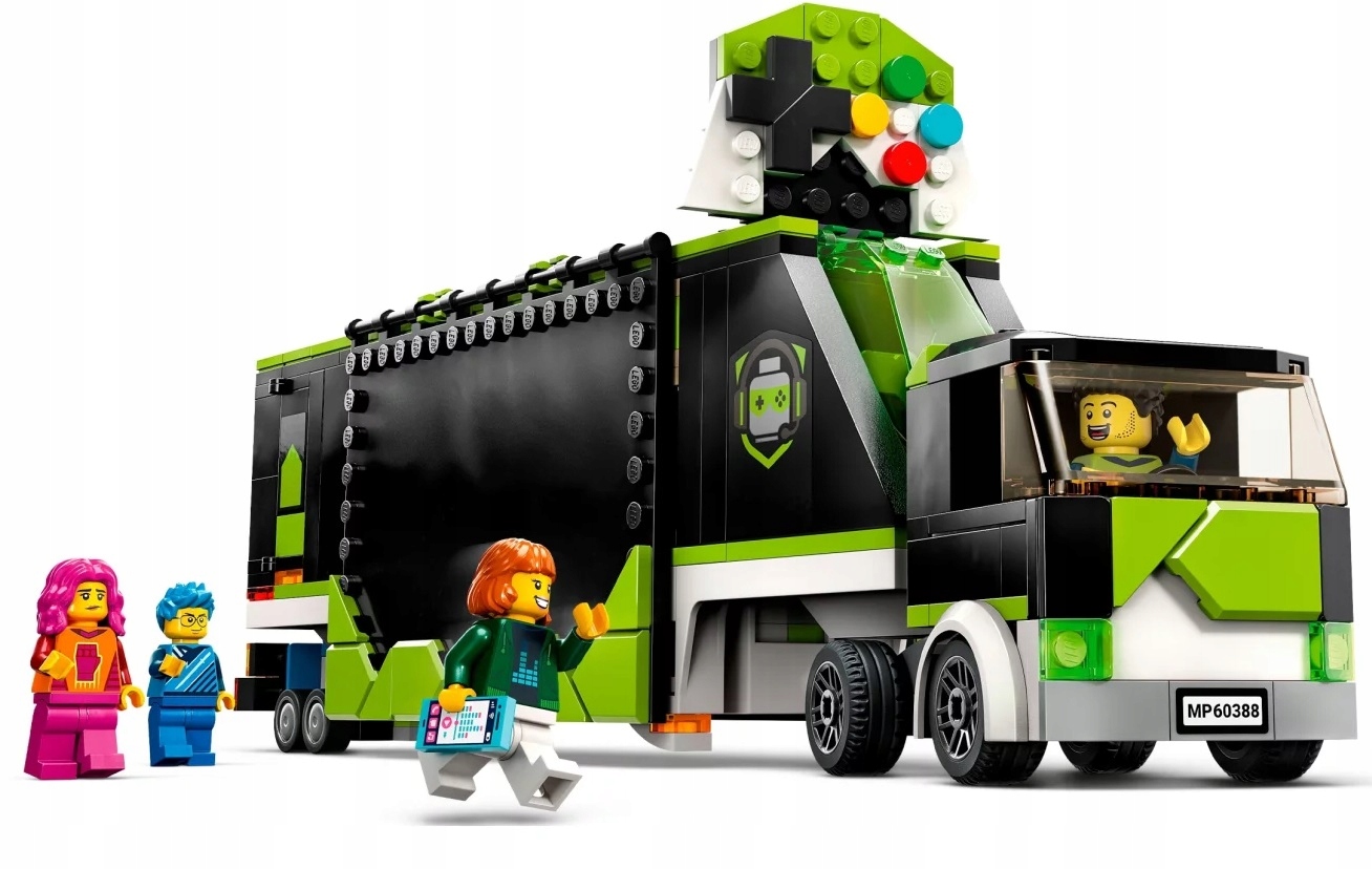 - Turniej gier – zestaw LEGO® City Ciężarówka na turniej gier (60388) jest pełen wyposażenia potrzebnego do organizacji wymyślonych zawodów e-sportowych