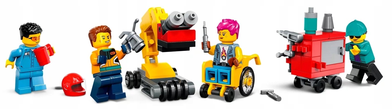 Całość uzupełniają dwie minifigurki mechaników, dwie minifigurki kierowców i akcesoria.