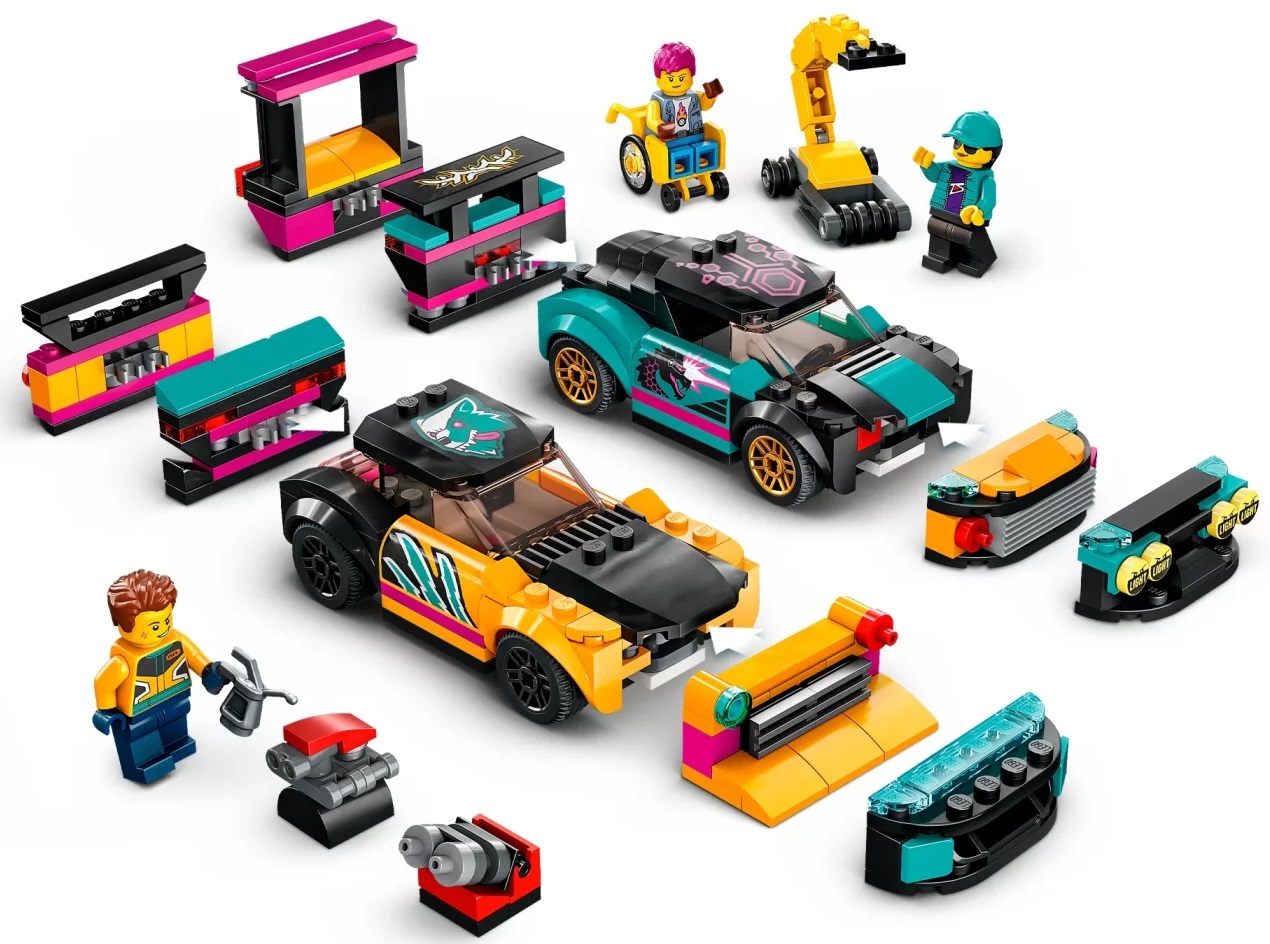 Tuning samochodów to bułka z masłem dzięki temu zestawowi LEGO® City Warsztat tuningowania samochodów (60389), który zawiera warsztat z mnóstwem funkcji i dwoma samochodami, które można modyfikować.