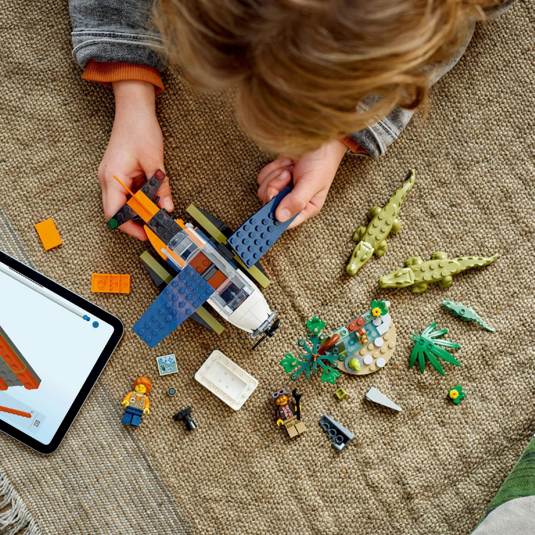 - Zestaw dla dzieci, które uwielbiają pomysłową zabawę — dzieci zbudują ciekawy model, a potem dołączą do fotografki i pilota na pokładzie zabawkowego samolotu, aby wziąć udział w ekscytującej wyprawie w poszukiwaniu krokodyli