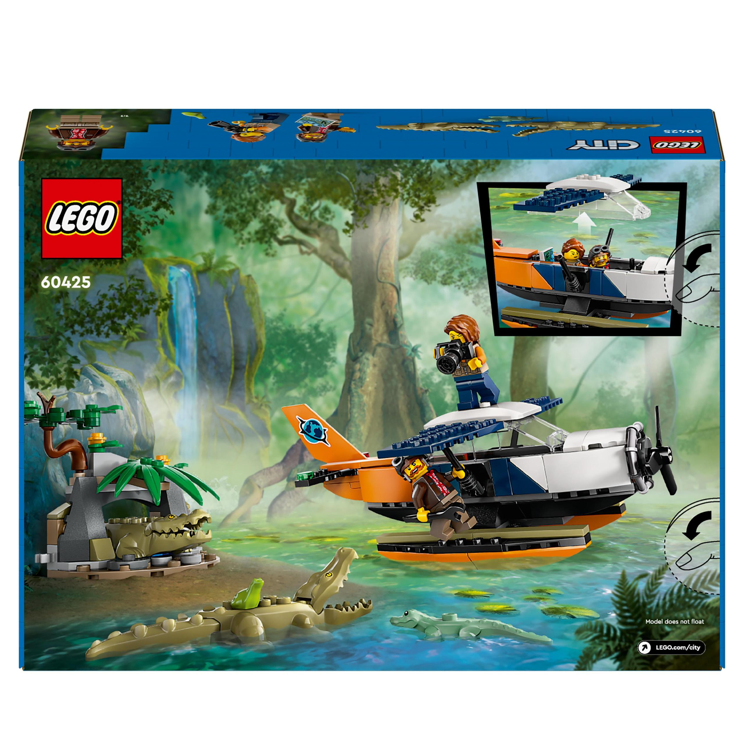 Zaskocz sześcioletnich i starszych poszukiwaczy przygód zestawem LEGO® City Wodolot badaczki dżungli (60425).