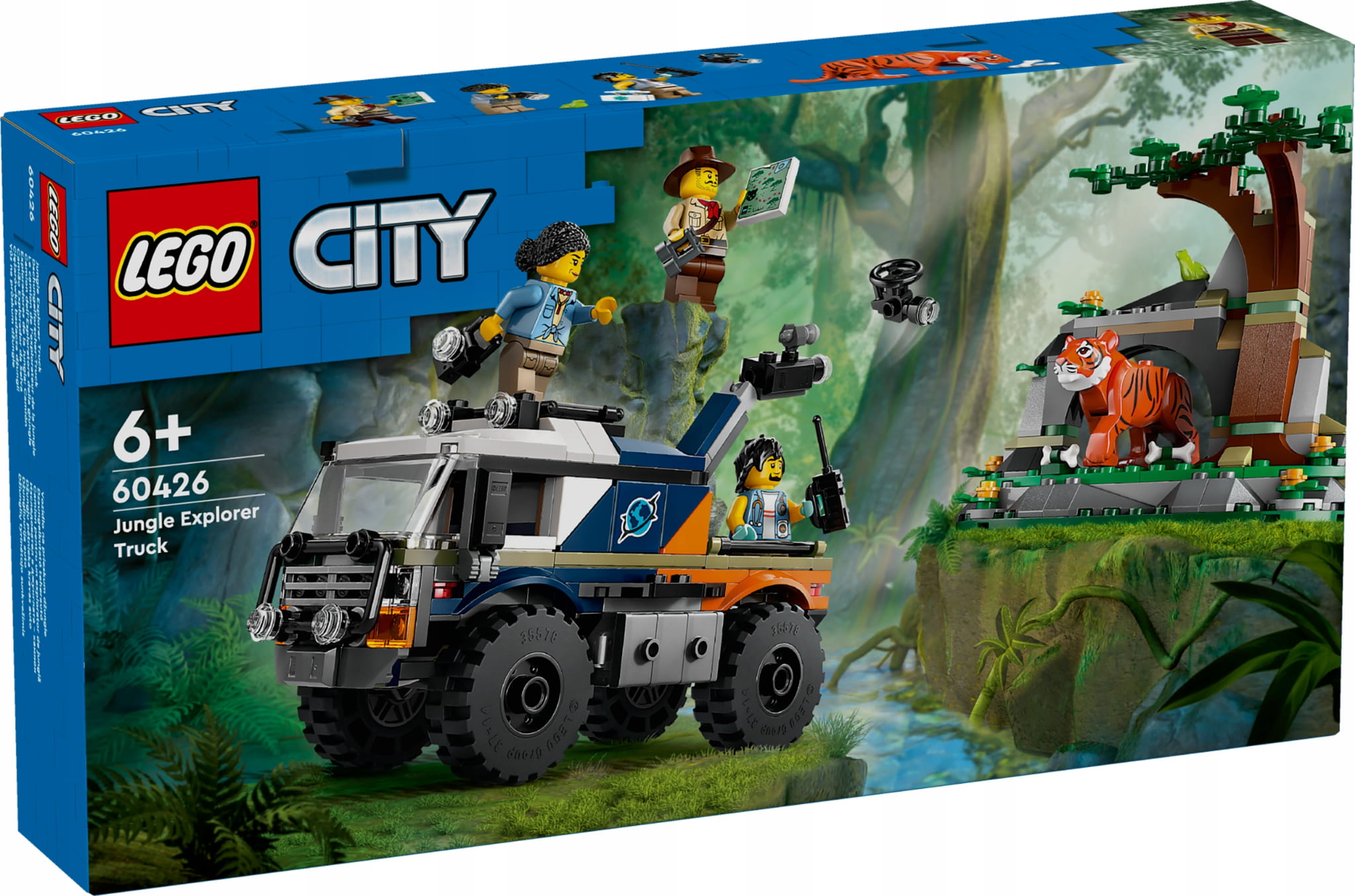 Obudź w sześciolatkach i starszych dzieciach ducha przygody dzięki zestawowi LEGO® City Terenówka badacza dżungli (60426).