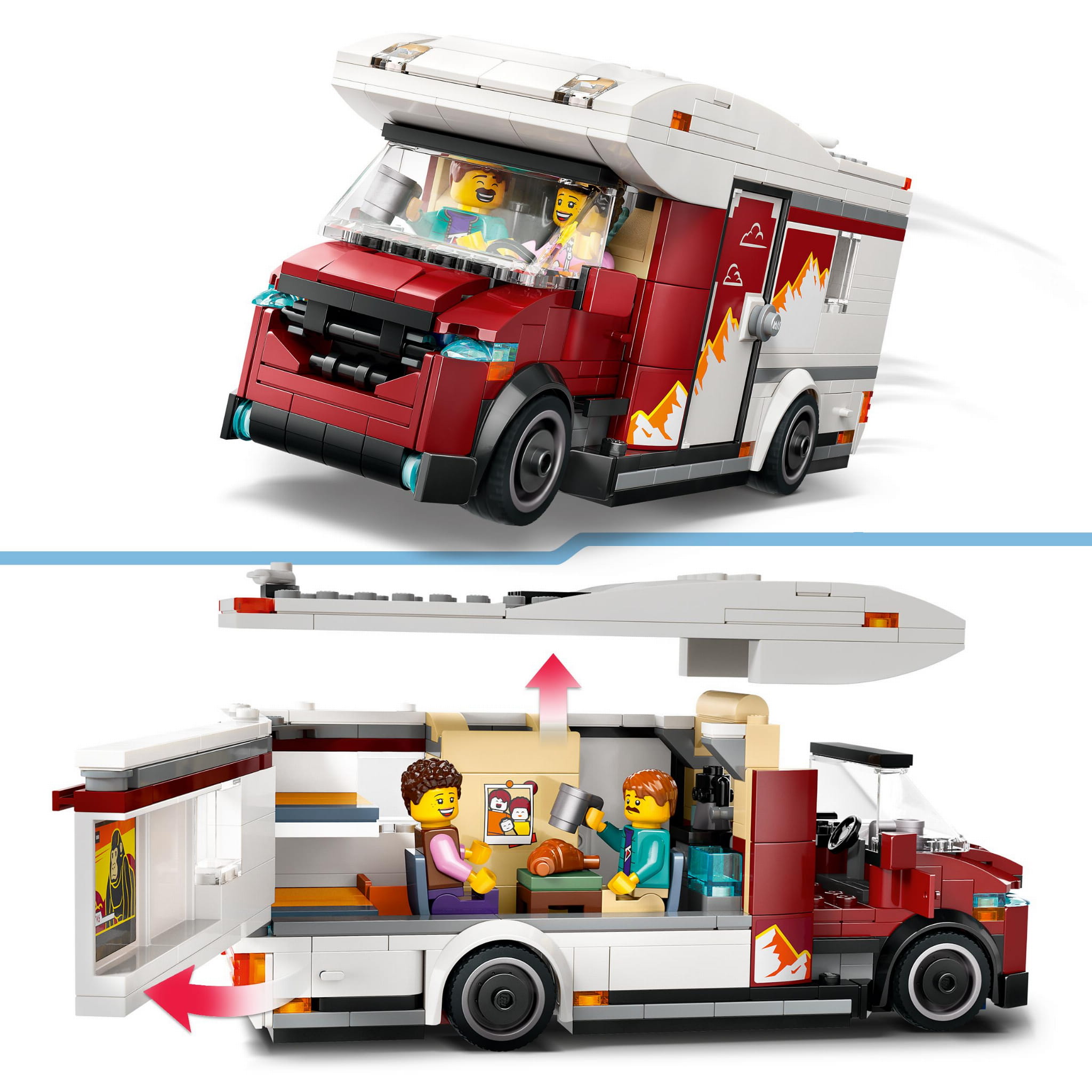 Dzięki zestawowi LEGO® City Wakacyjny kamper pełen przygód (60454) dzieci mogą podróżować do wymarzonych miejsc.