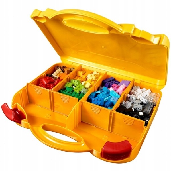 Uporządkuj swoje klocki LEGO® w sprytnej i pojemnej Kreatywnej walizce LEGO Classic. Otwórz żółtą walizkę, by dostać się do kolorowych klocków. Możesz budować z nich urocze zwierzątka, fajne samochody, przytulne domki i wszystko, co podpowie Ci wyobraźnia. Gdy skończysz, włóż klocki do przegródek tak, jak chcesz — i gotowe!