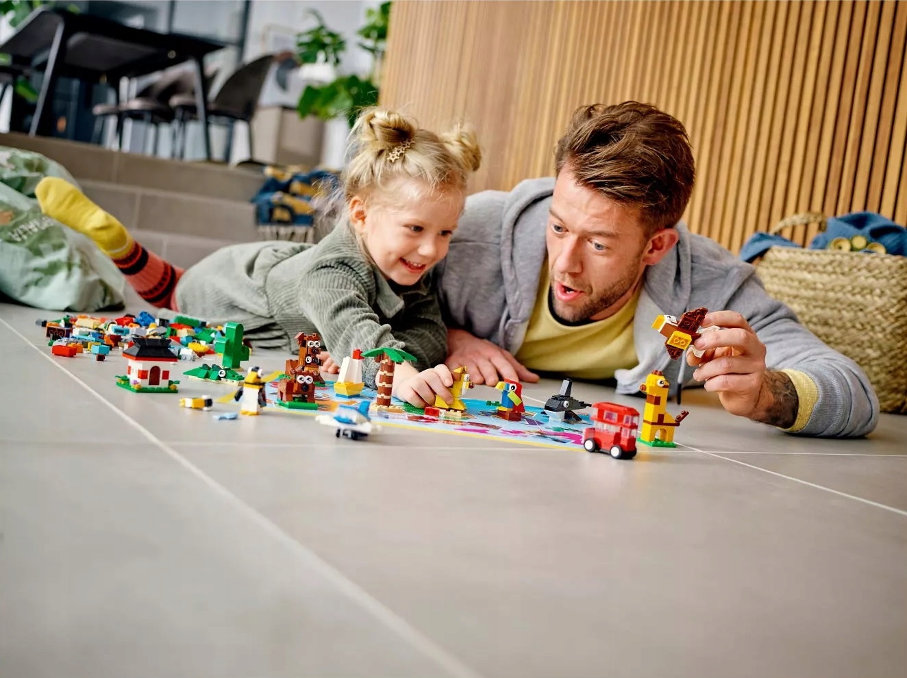 Zestaw LEGO® Classic Dookoła świata (11015) oferuje 15 modeli przedstawiających najpopularniejsze zwierzęta i obiekty z całego świata. Zawiera także kolorową mapę ścienną pokazującą kontynenty, z których pochodzą wszystkie zwierzęta i rośliny. A szeroka gama klocków LEGO i sporo dodatkowych elementów w pudełku pozwolą zbudować niezliczoną liczbę innych kreatywnych konstrukcji