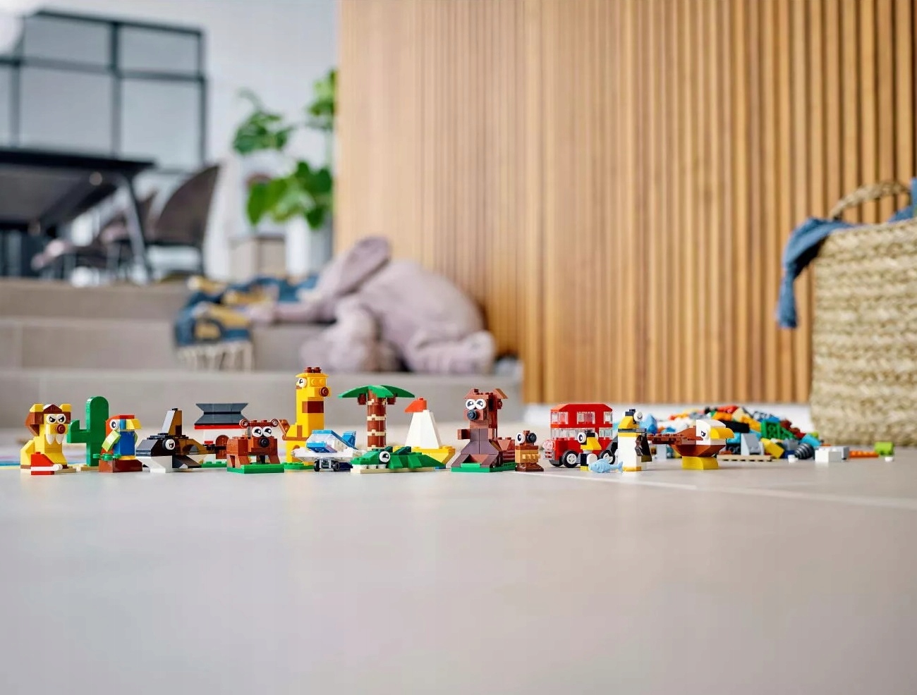 - Dzieci mogą zbudować bielika amerykańskiego, kaktus, papugę, małego krokodyla, orkę, lwa, palmę, żyrafę, czerwony autobus, kangurzycę z młodym, niedźwiedzia brunatnego, azjatycki dom, pingwina z pisklęciem i rybą, żaglówkę i samolot.