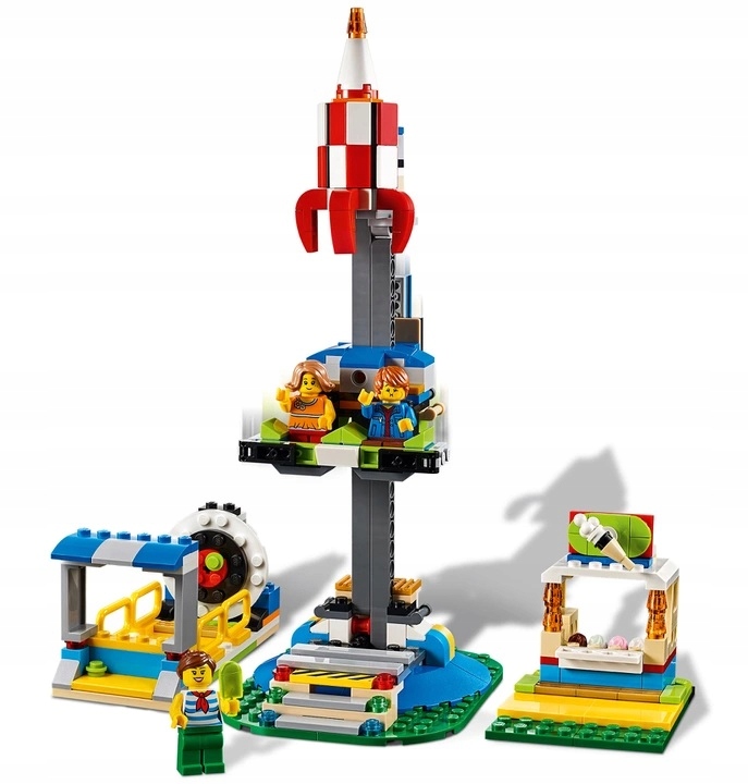 W zestawie są trzy minifigurki gotowe do zabawy w lunaparku. Zestaw LEGO® Creator 3 w 1 umożliwia zbudowanie trzech różnych modeli. Karuzelę można przebudować na wieżę swobodnego spadania lub wspaniały diabelski młyn i dowiedzieć się, jakie jeszcze emocje czekają w lunaparku.