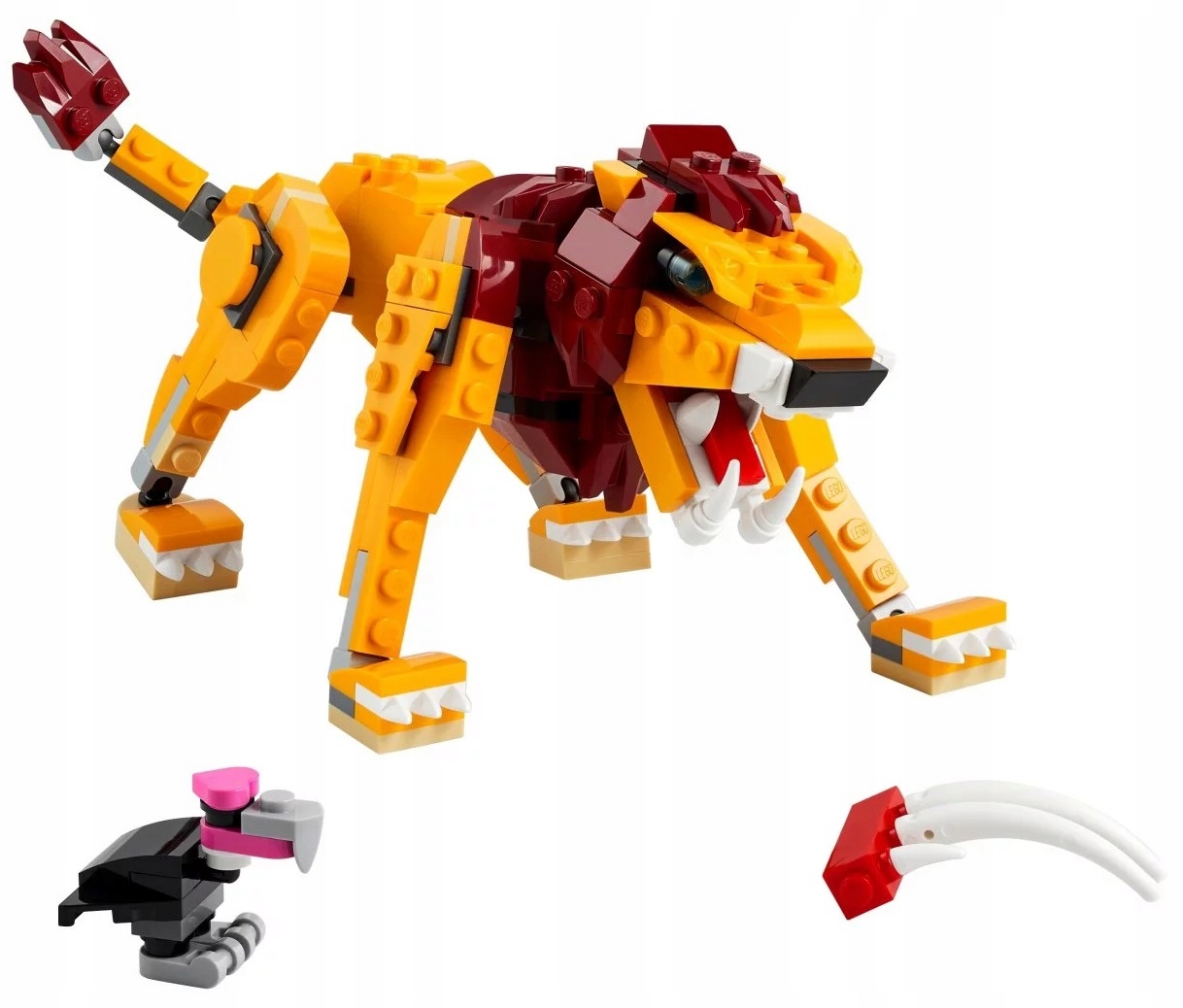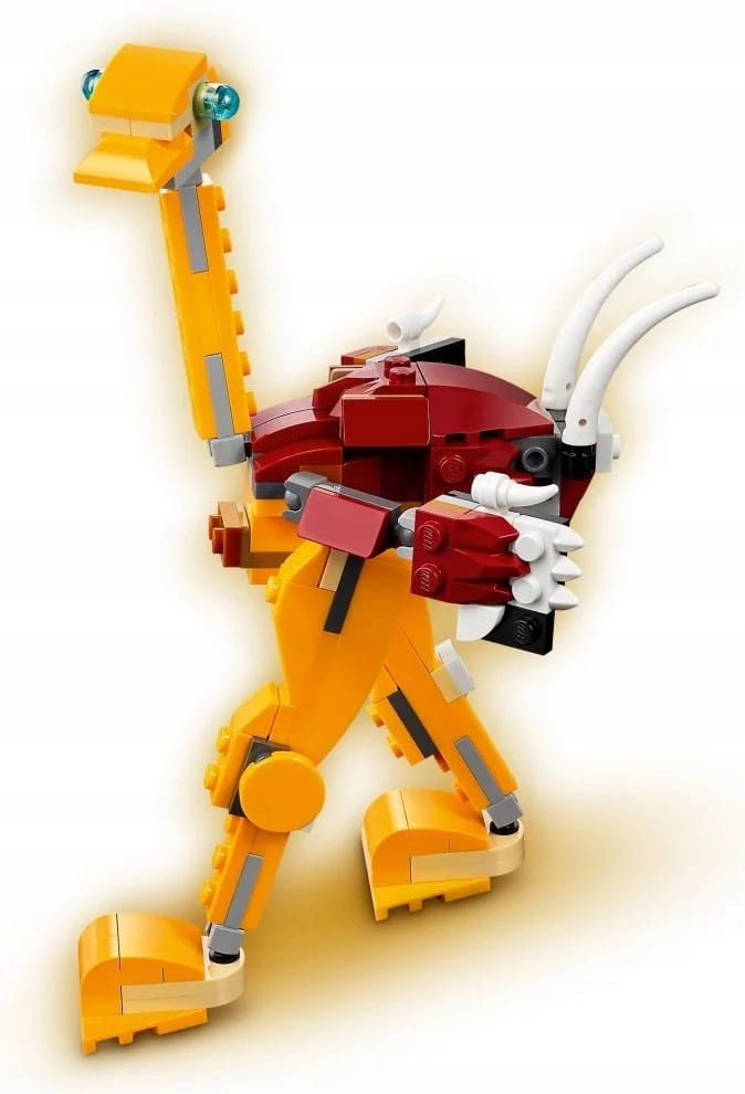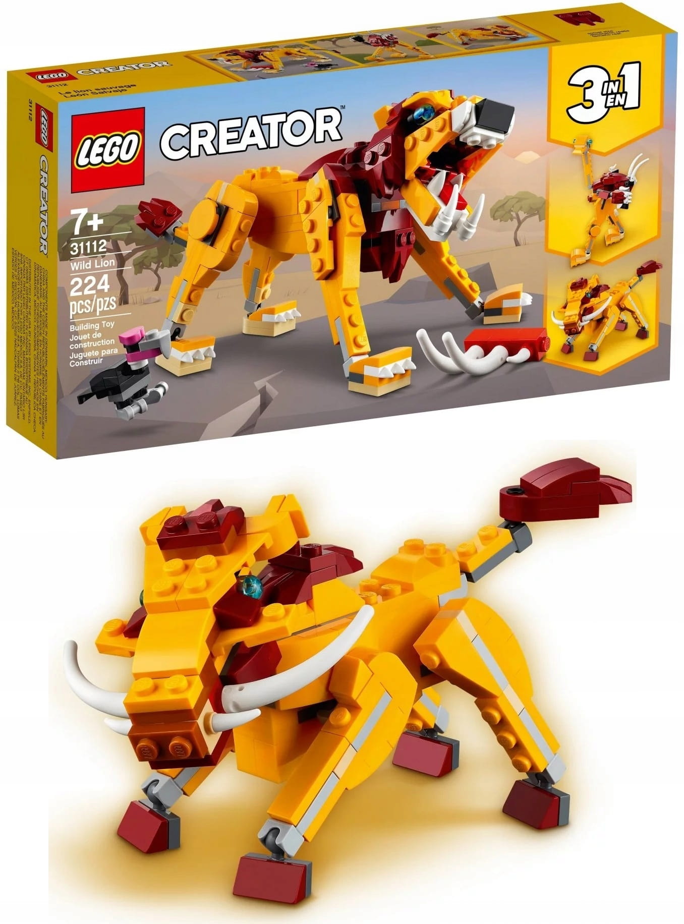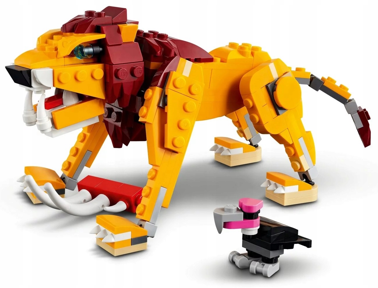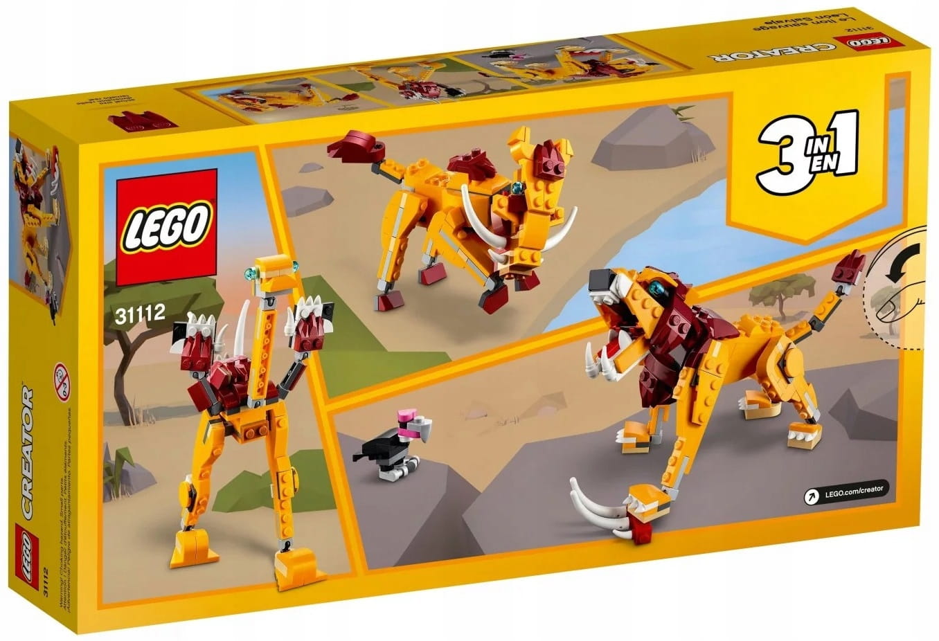 - Zestaw LEGO® Creator 3 w 1 Dziki lew (31112) zawiera trzy modele, które rozpalą dziecięcą wyobraźnię — dzikiego lwa, strusia i guźca.