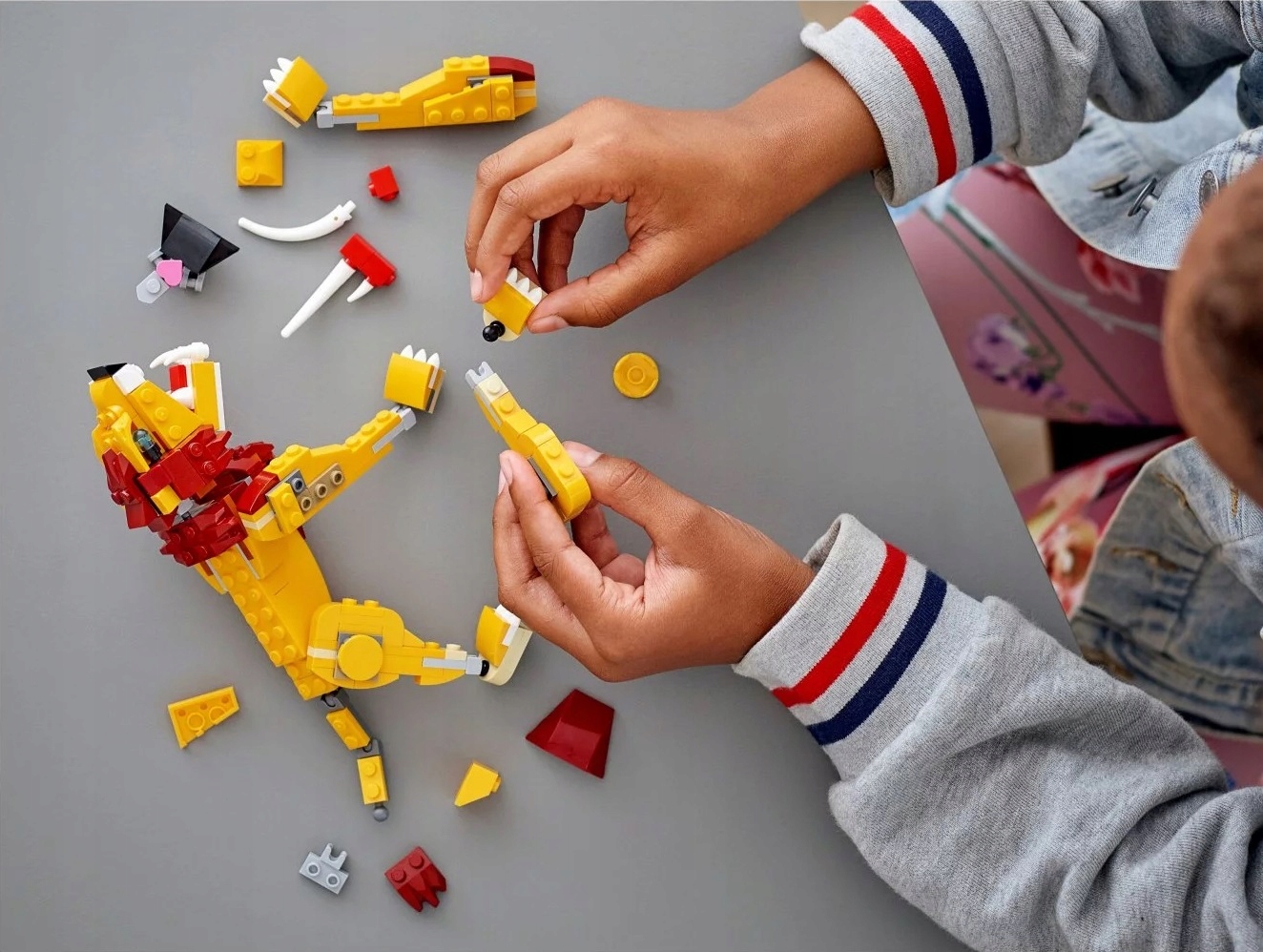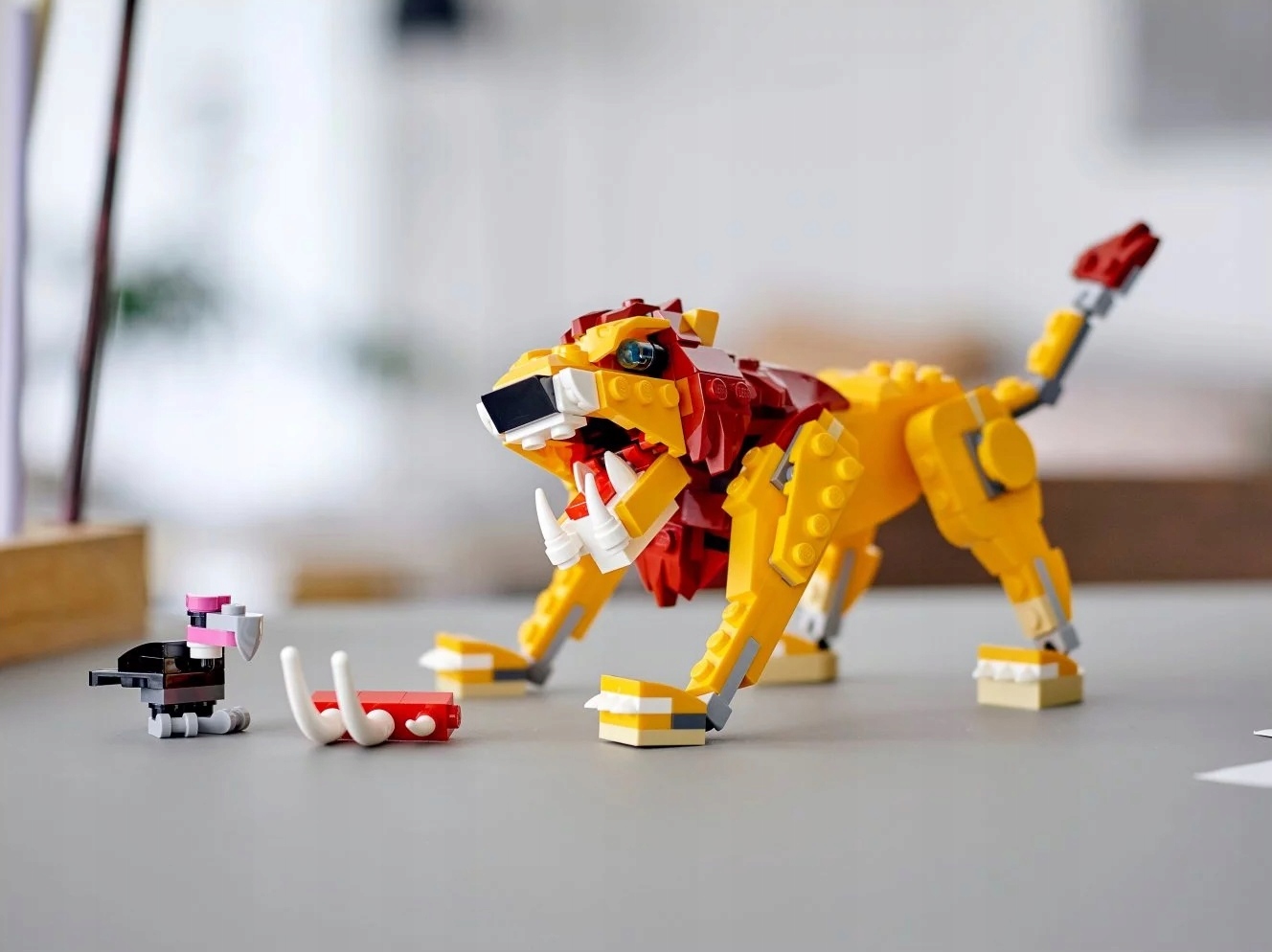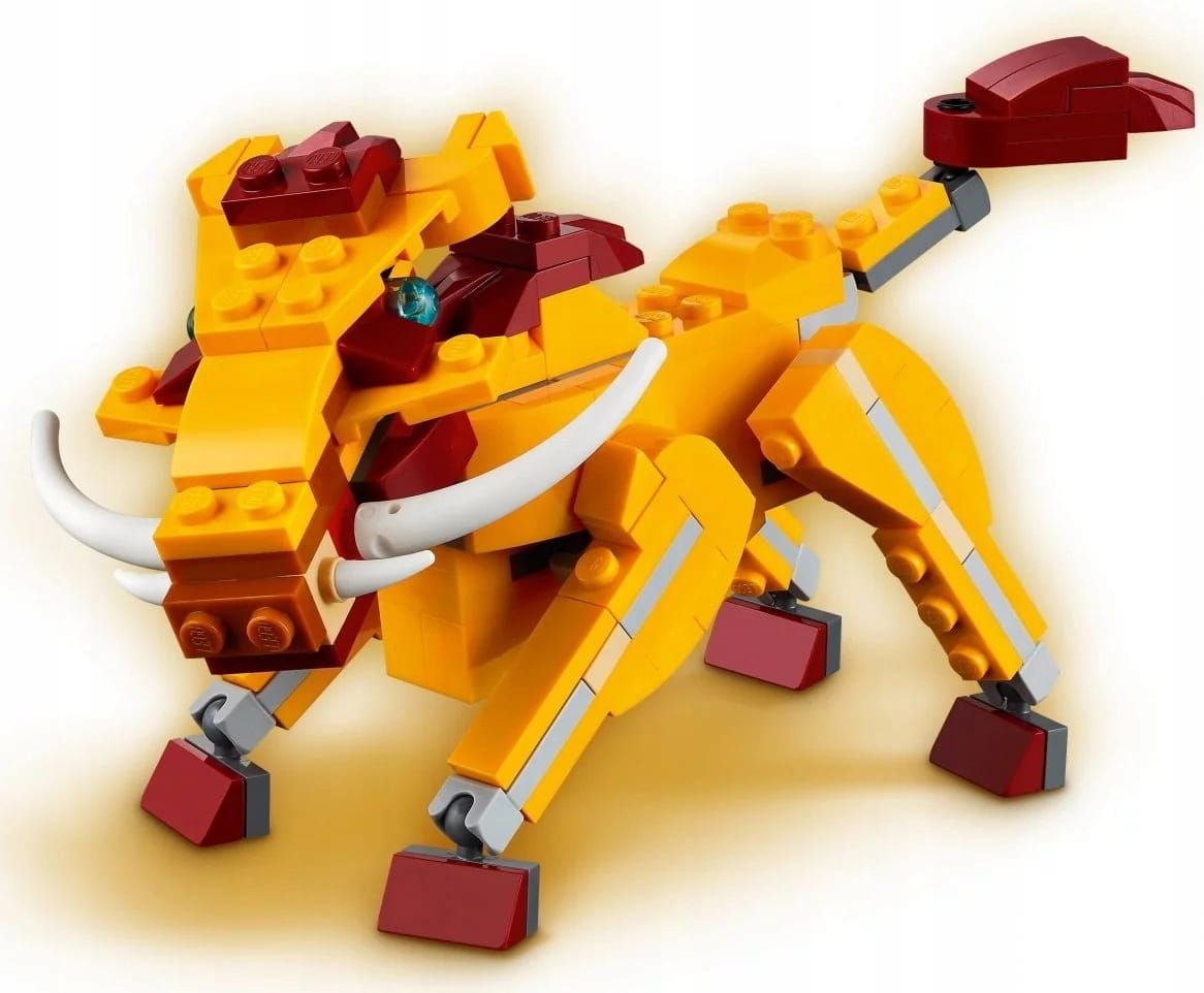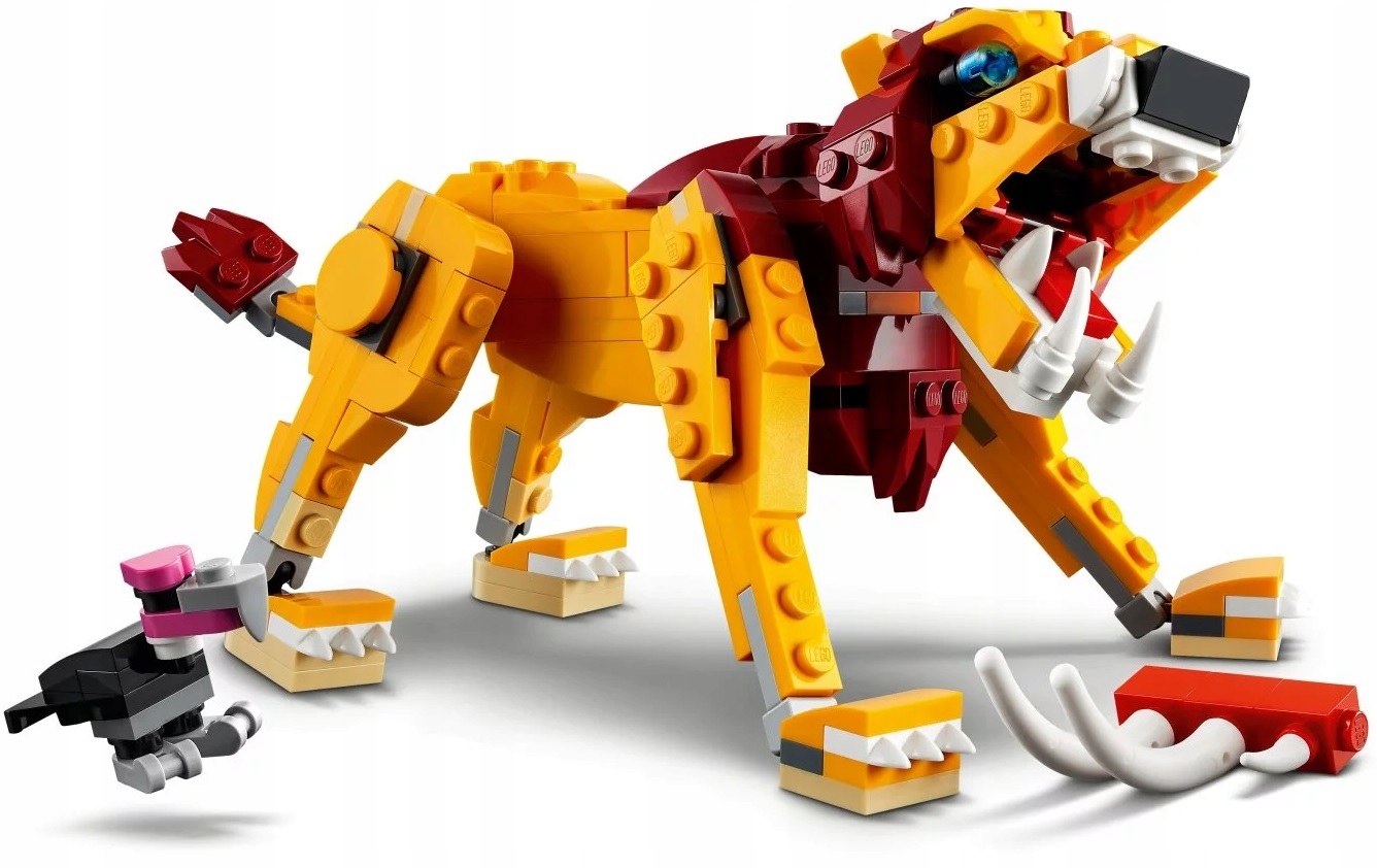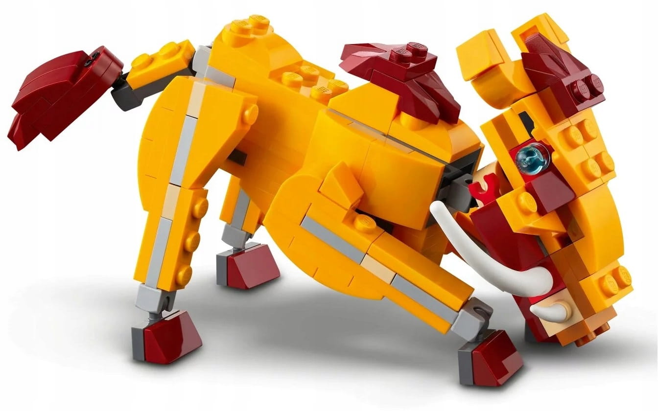 - Zestaw LEGO® Creator 3 w 1 Dziki lew (31112) zawiera trzy modele, które rozpalą dziecięcą wyobraźnię — dzikiego lwa, strusia i guźca.