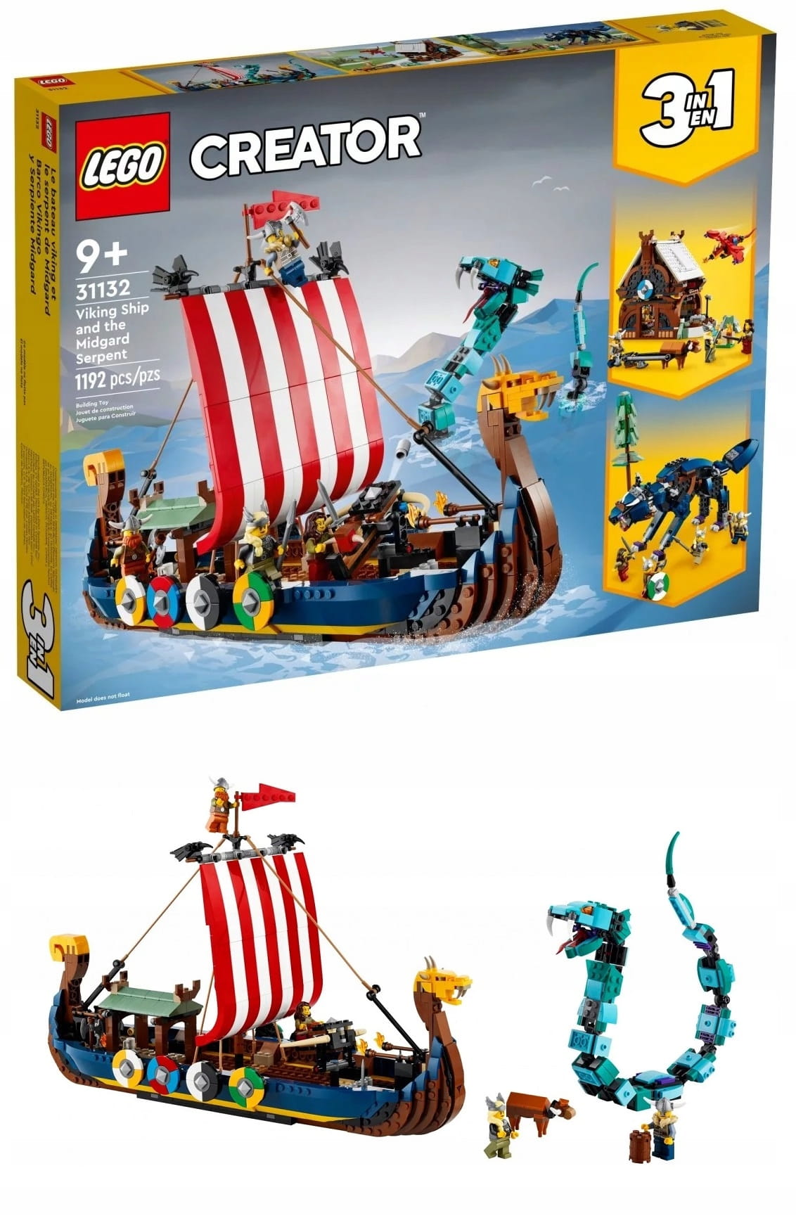 LEGO Creator 3 w 1 31132 Statek wikingów i wąż z Midgardu