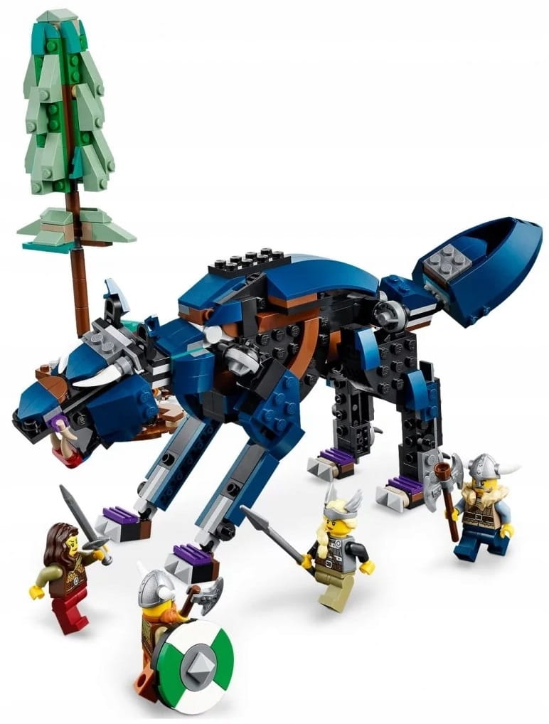 Fani LEGO będą zachwyceni trzema różnymi zabawkami z tego ekscytującego zestawu 3 w 1 z wikingami. Dzieci mogą złożyć statek wikingów i węża z Midgardu, dom wikingów ze smokiem i zbudowaną z klocków krową, a także wilka Fenrisa i drzewo z ukrytymi klejnotami. Podczas zabawy każdym z modeli można również wykorzystać cztery minifigurki wikingów.