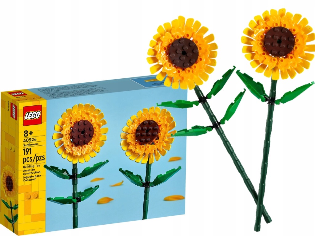 - Sięgnij po kolorowy zestaw konstrukcyjny LEGO® Słoneczniki (40524) i zbuduj ozdobę, którą udekorujesz swój dom. W pudełku są dwa kwiaty słoneczników z regulowanymi zielonymi łodygami i liśćmi