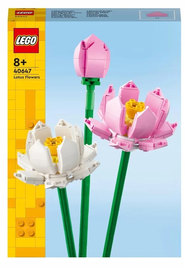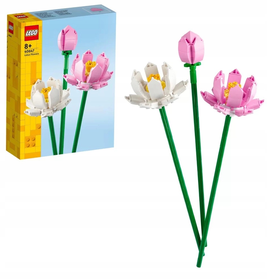 - Bukiet LEGO® do zbudowania — dzięki zestawowi Kwiaty lotosu LEGO (40647) stworzysz kwiatową kompozycję, która ozdobi dowolne pomieszczenie. Zestaw został stworzony dla fanów wystroju wnętrz i inspirujących projektów LEGO