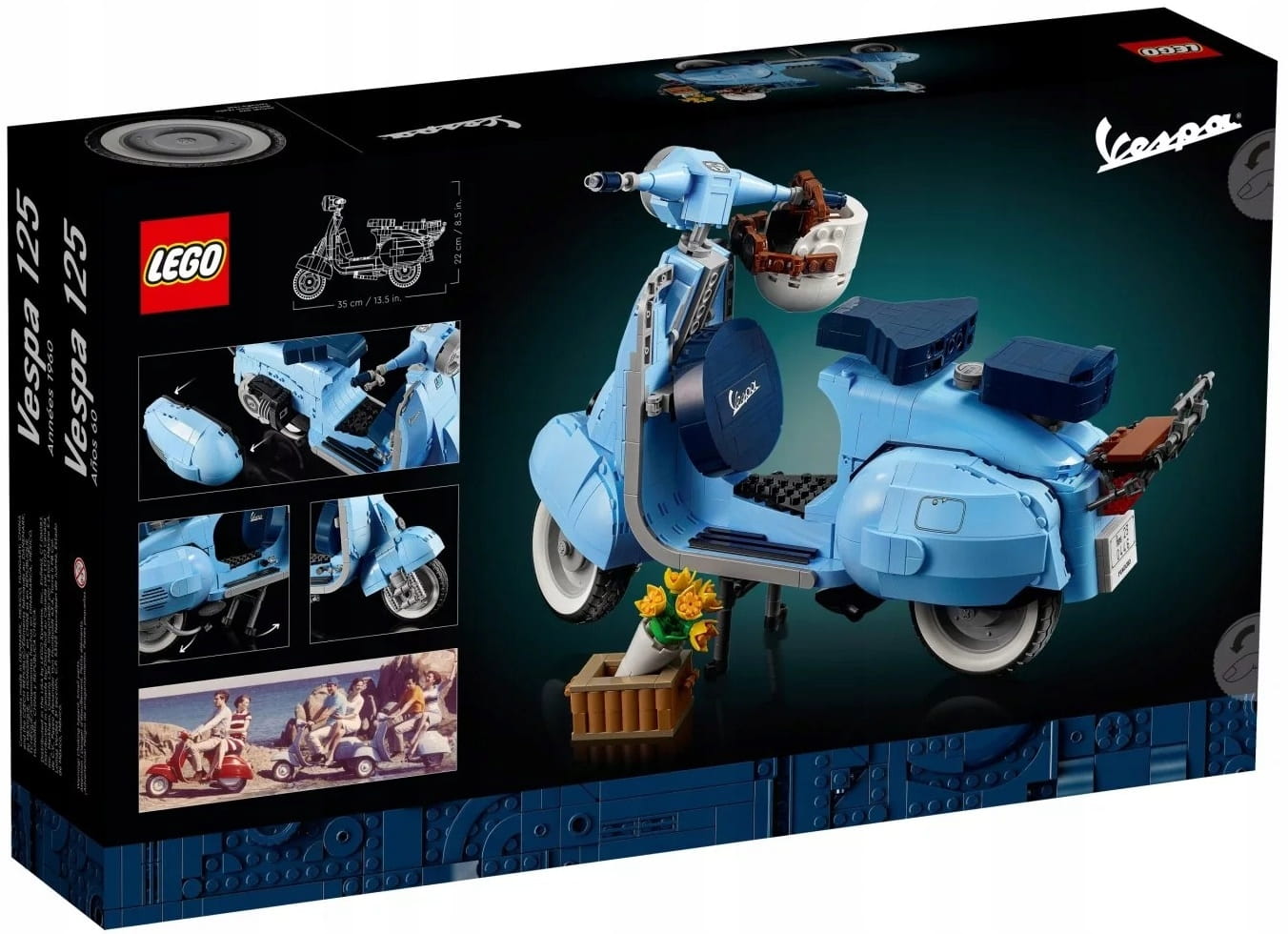 Daj się pochłonąć relaksującemu projektowi konstrukcyjnemu, budując stylowy zestaw z modelem LEGO® Vespa 125 dla dorosłych. Inspirowany klasycznymi skuterami Vespa Piaggio z lat 60. model zachwyci fanów budowania pastelowoniebieskim kolorem, który w zestawach LEGO stanowi rzadkość. Z okazji 75. urodzin marki Vespa projektanci LEGO wspólnie z jej przedstawicielami ciężko pracowali, aby stworzyć imponującą replikę pojazdu i zapewnić fanom — zwłaszcza tym dorosłym — wciągającą zabawę podczas budowania.
